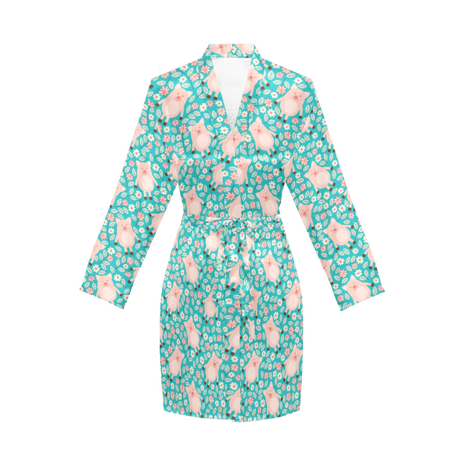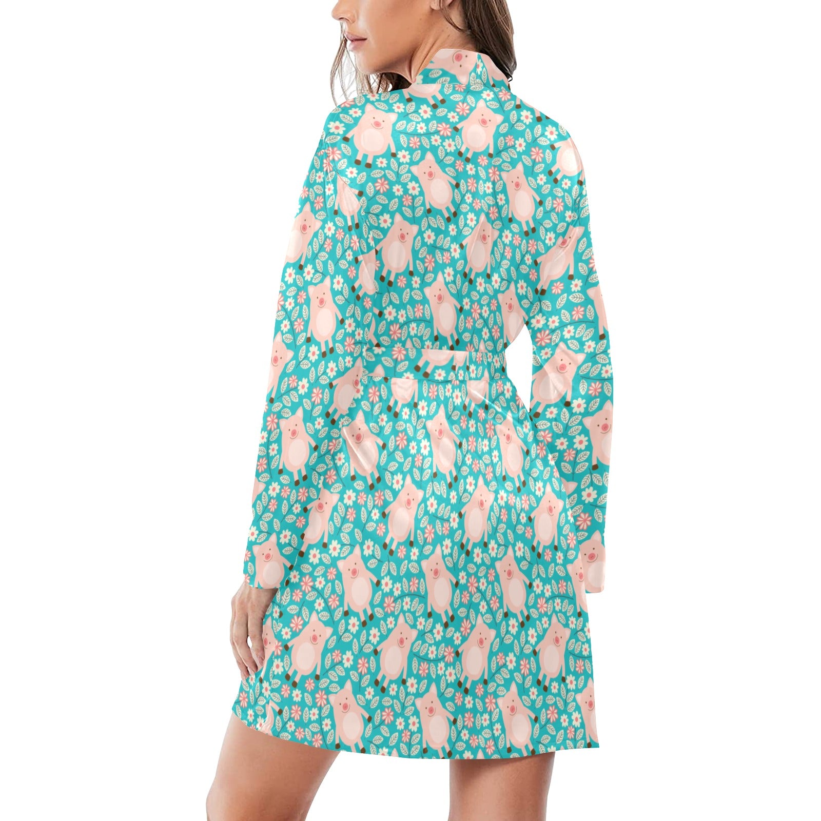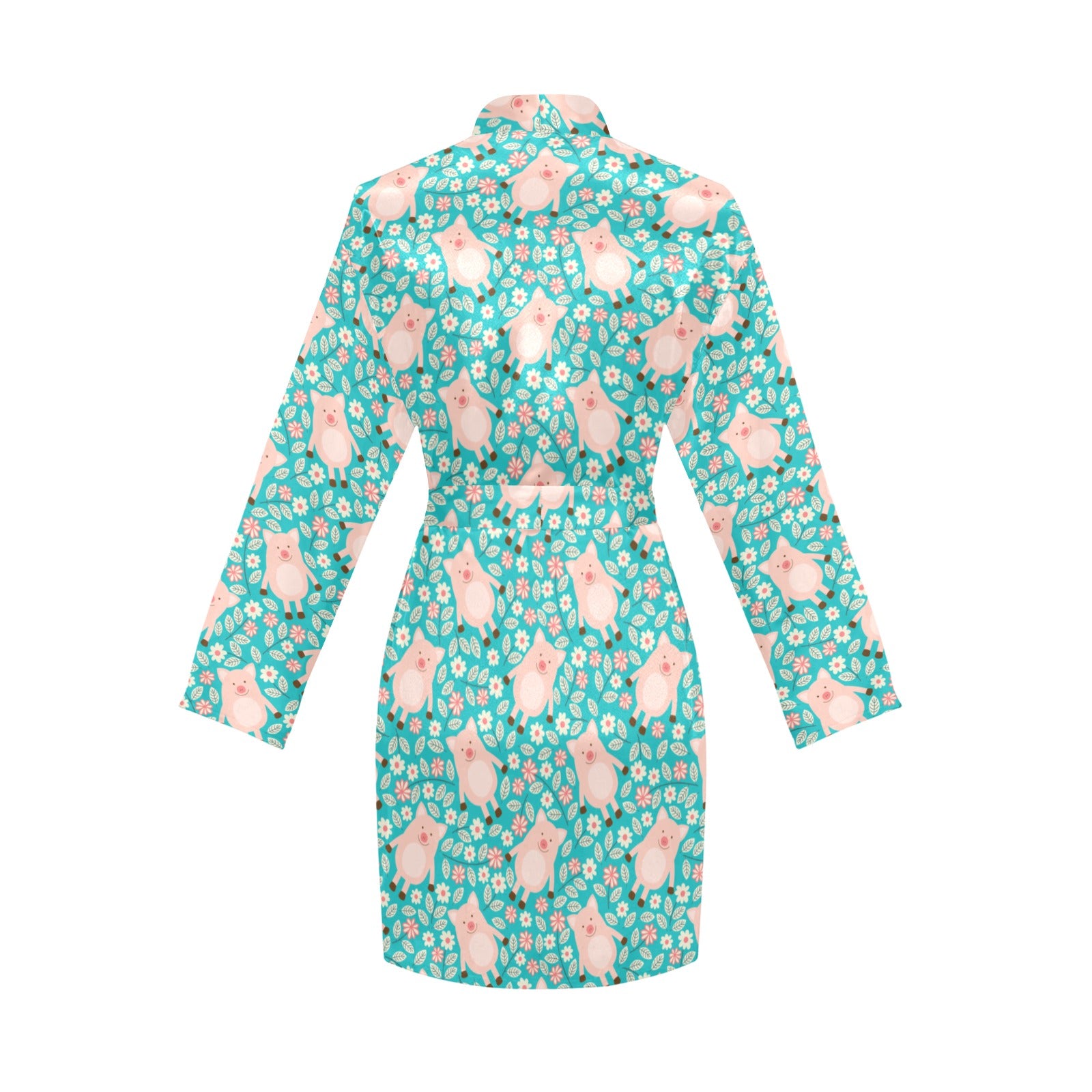Pig Pattern Print Design 01 Women's Long Sleeve Belted Night Robe