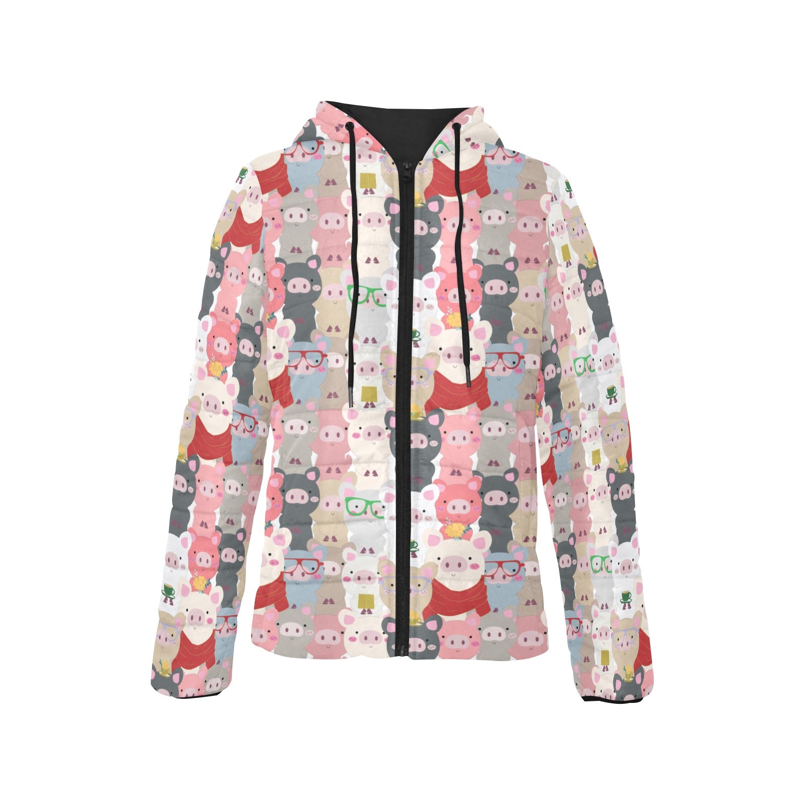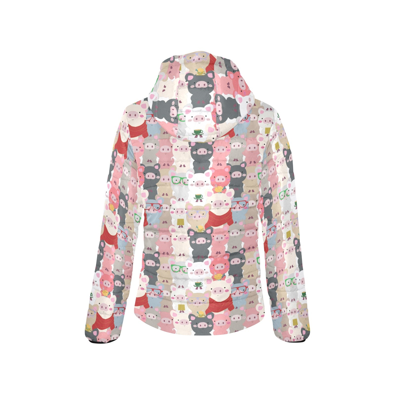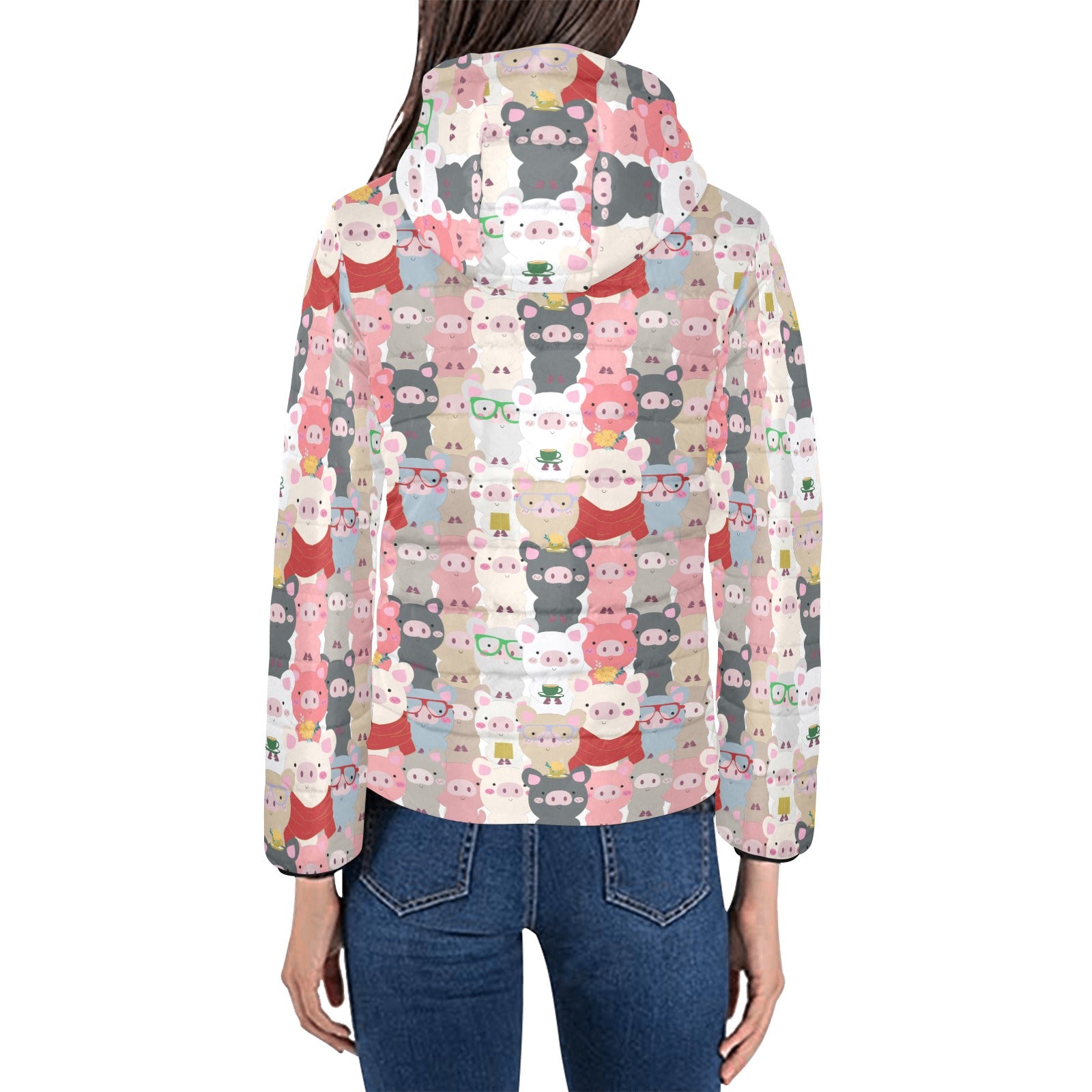 Pig Pattern Print Design 02 Women's Padded Hooded Jacket