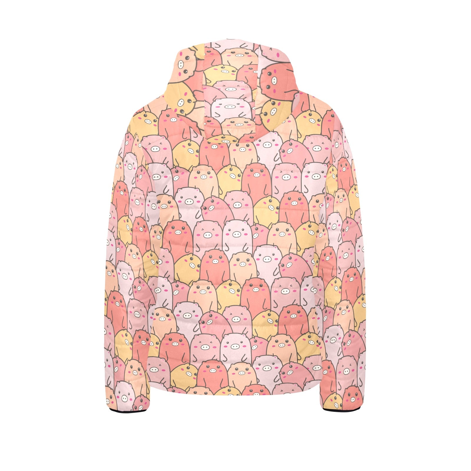 Pig Pattern Print Design 04 Kids' Boys' Girls' Padded Hooded Jacket