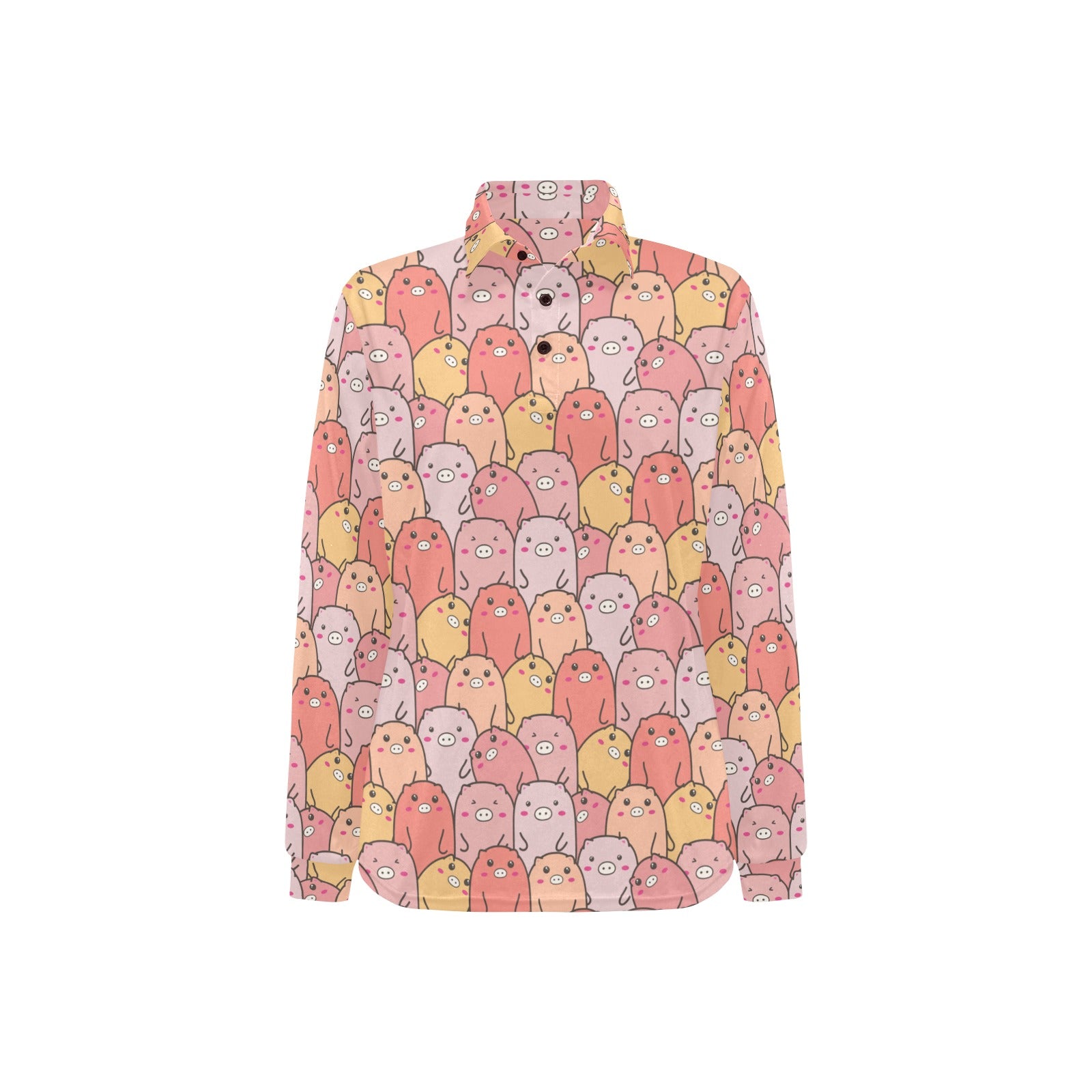 Pig Pattern Print Design 04 Women's Long Sleeve Polo Shirt