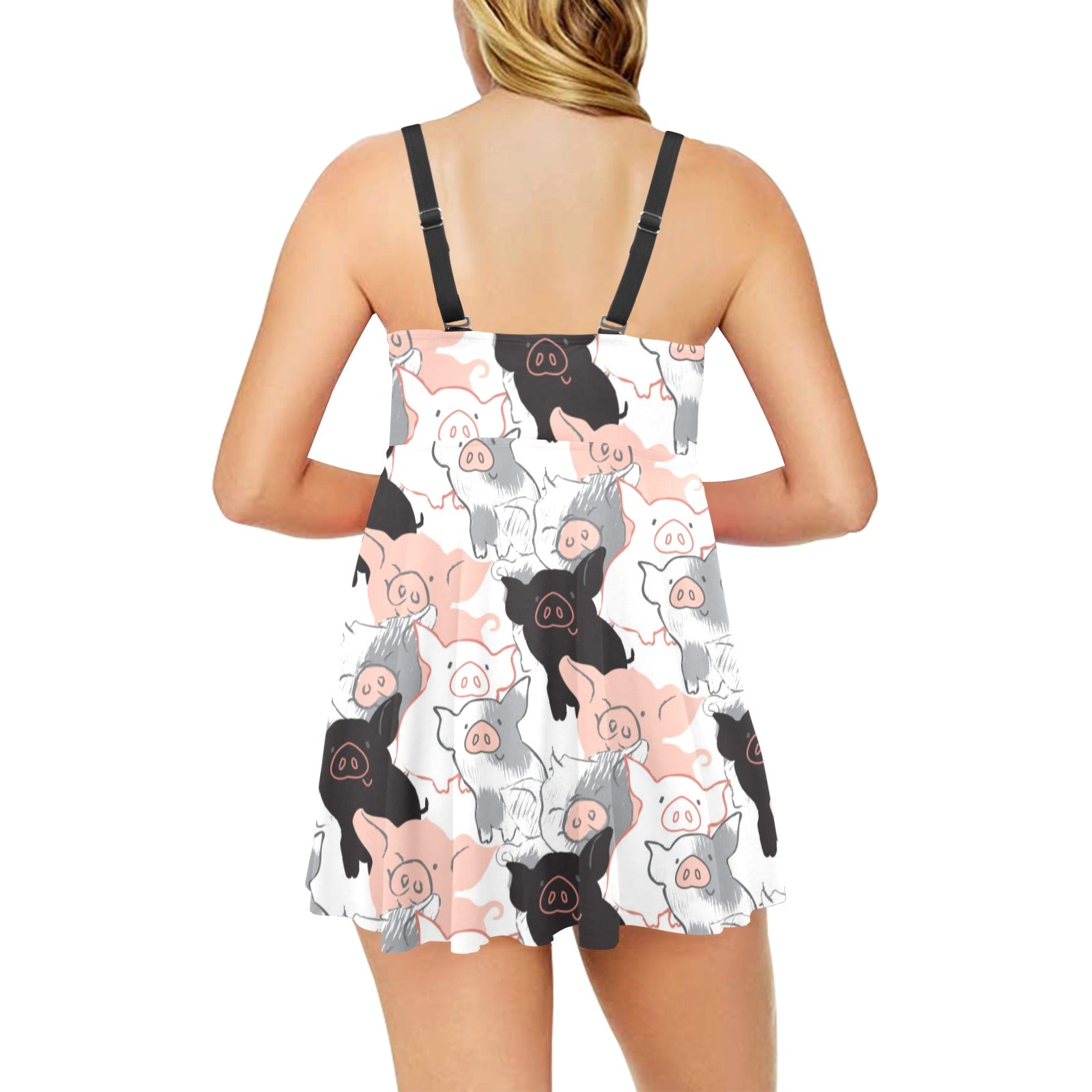 Pig Pattern Print Design 05 Chest Sexy Pleated Two Piece Swim Dress