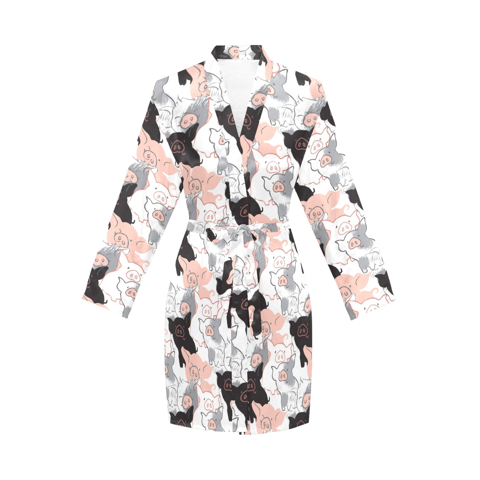 Pig Pattern Print Design 05 Women's Long Sleeve Belted Night Robe
