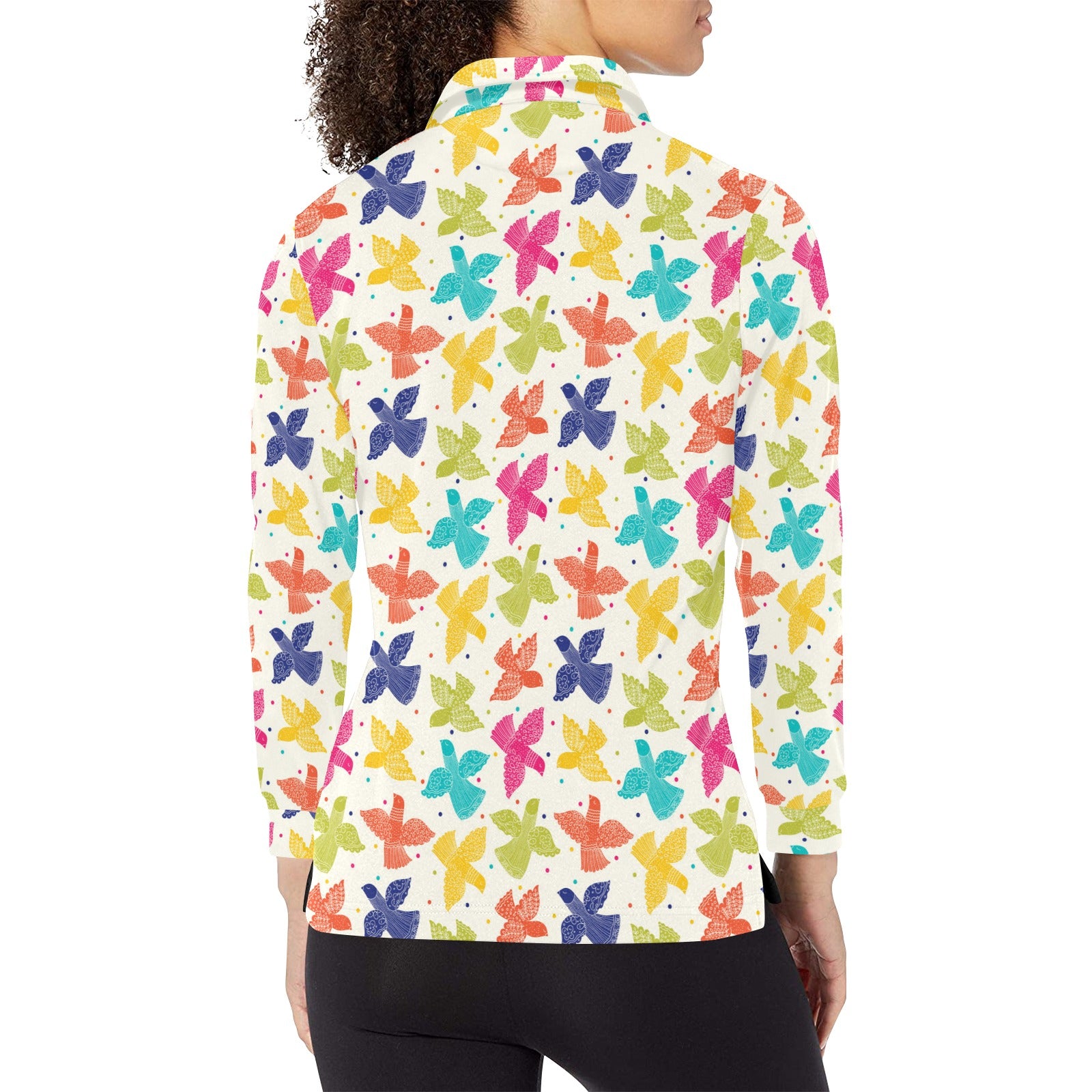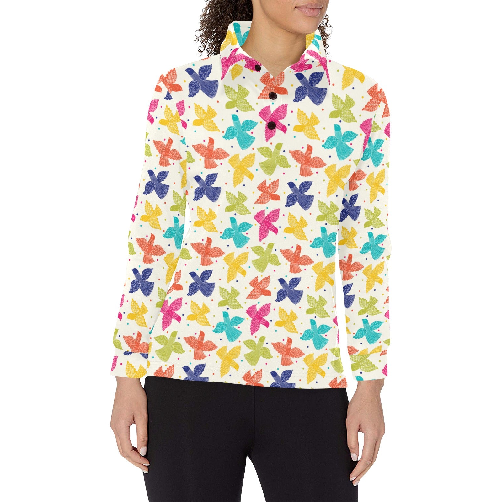 Pigeon Pattern Print Design 01 Women's Long Sleeve Polo Shirt