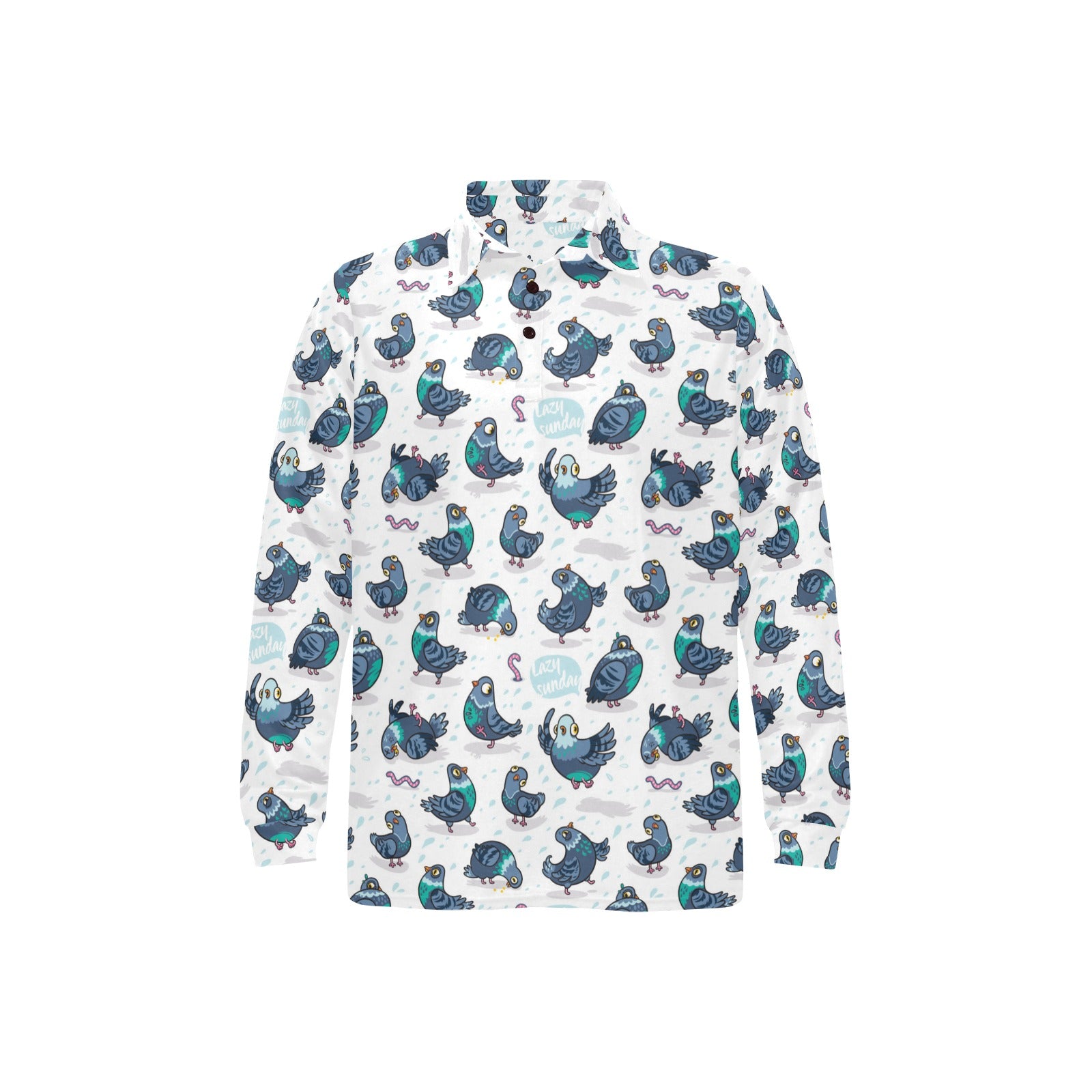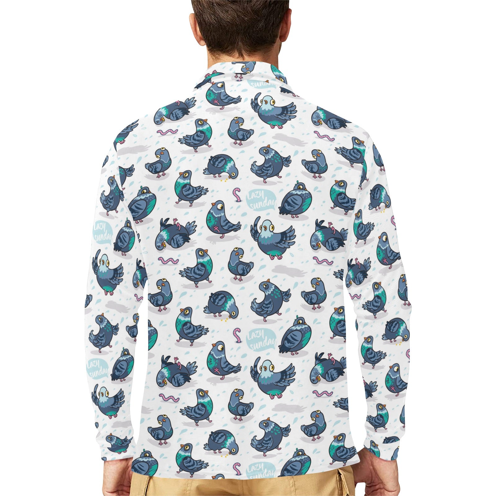 Pigeon Pattern Print Design 02 Men's Long Sleeve Polo Shirt