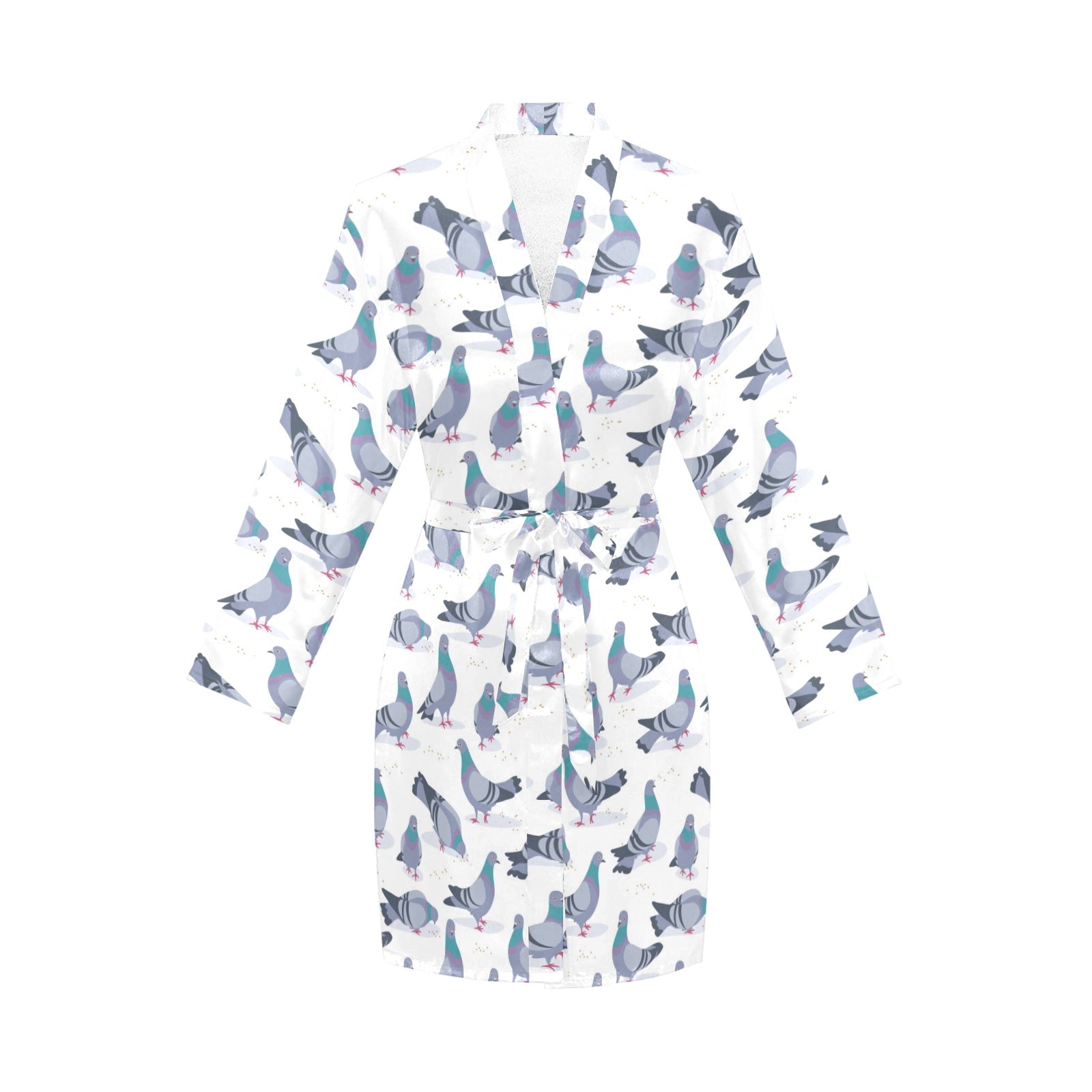 Pigeon Pattern Print Design 03 Women's Long Sleeve Belted Night Robe