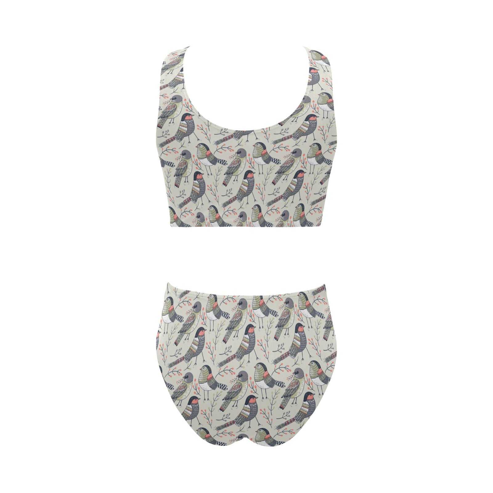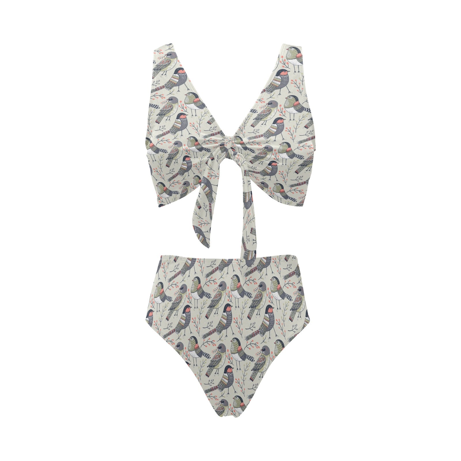Pigeon Pattern Print Design 04 Chest Bowknot High Waisted Bikini Swimsuit