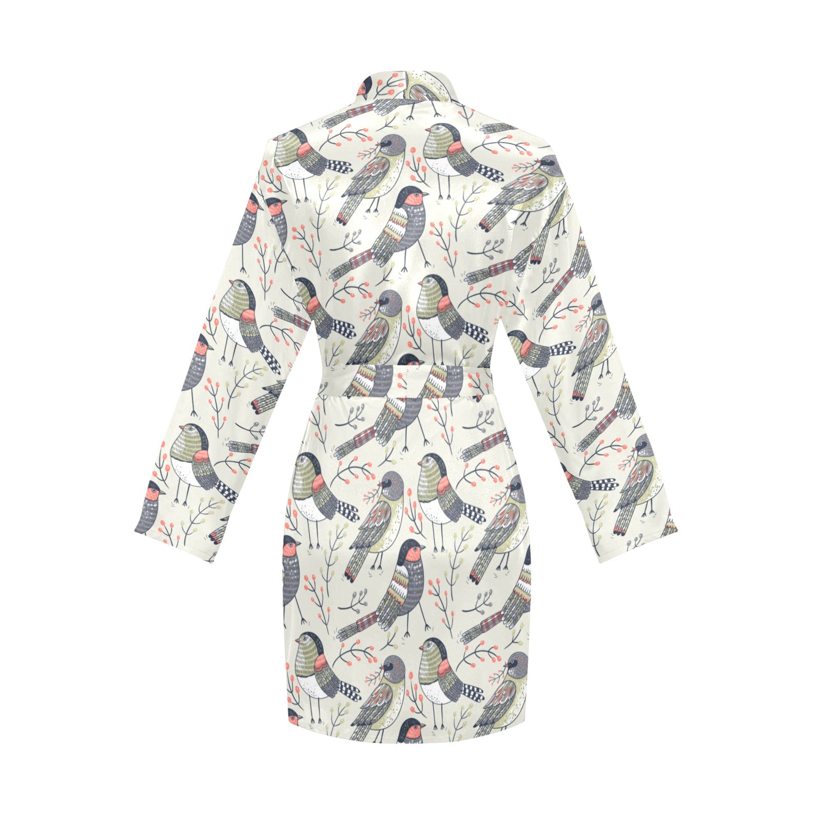 Pigeon Pattern Print Design 04 Women's Long Sleeve Belted Night Robe