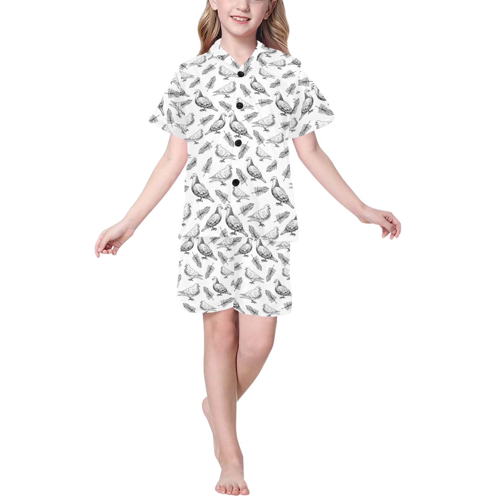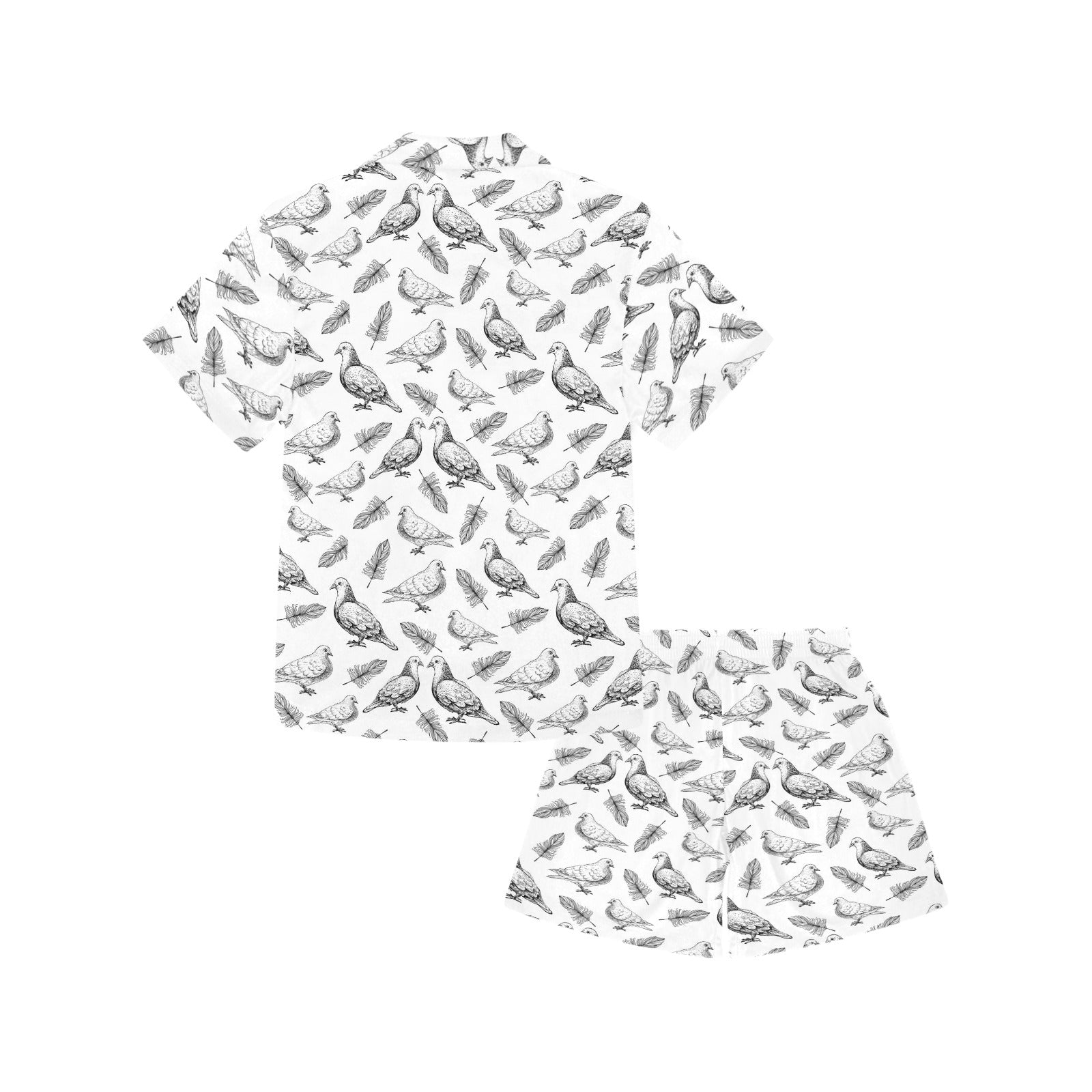 Pigeon Pattern Print Design 05 Kids' Boys' Girls' V-Neck Short Pajama Set