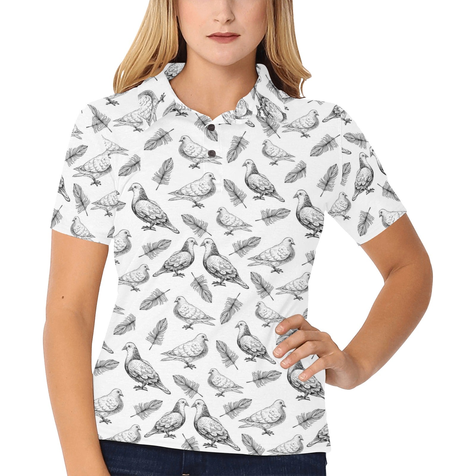 Pigeon Pattern Print Design 05 Women's All Over Print Polo Shirt