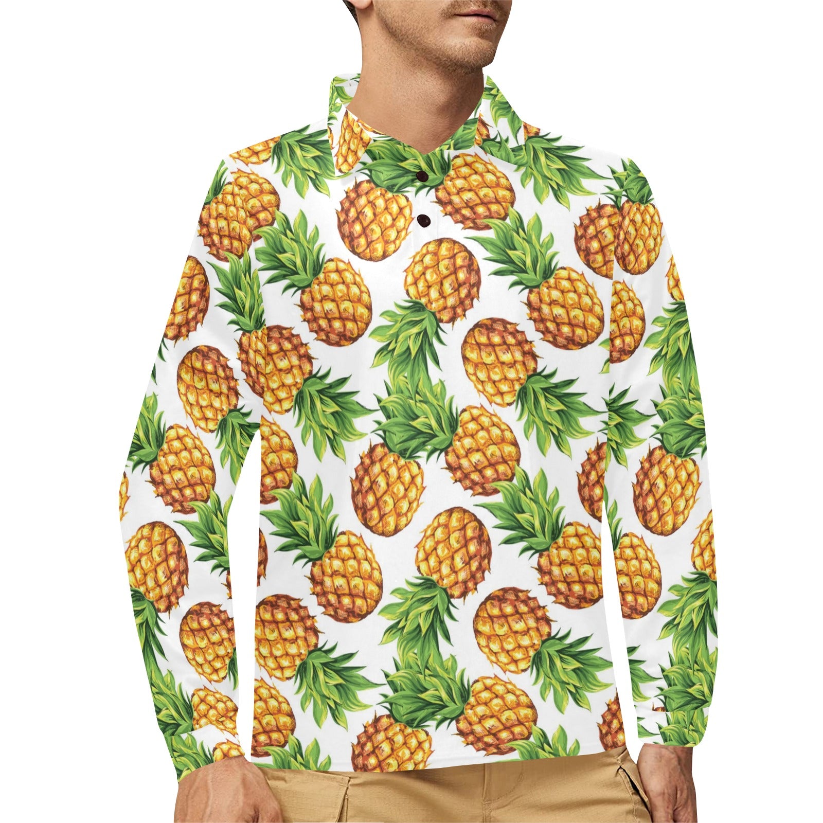 Pineapples design pattern Men's Long Sleeve Polo Shirt