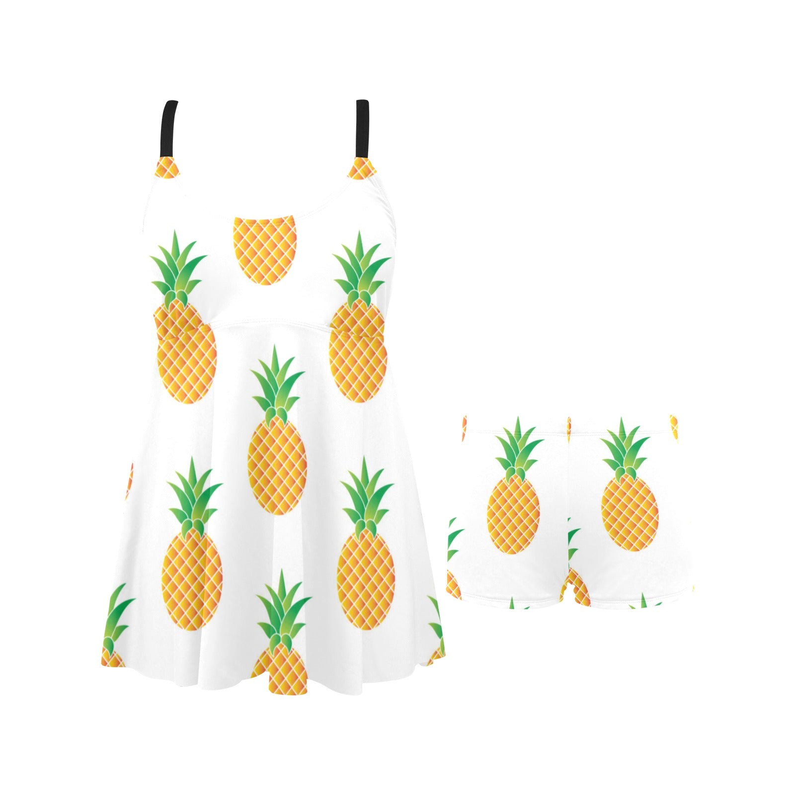 Pineapples pattern Chest Sexy Pleated Two Piece Swim Dress