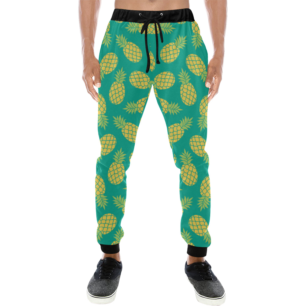 Pineapples pattern green background Unisex Casual Sweatpants