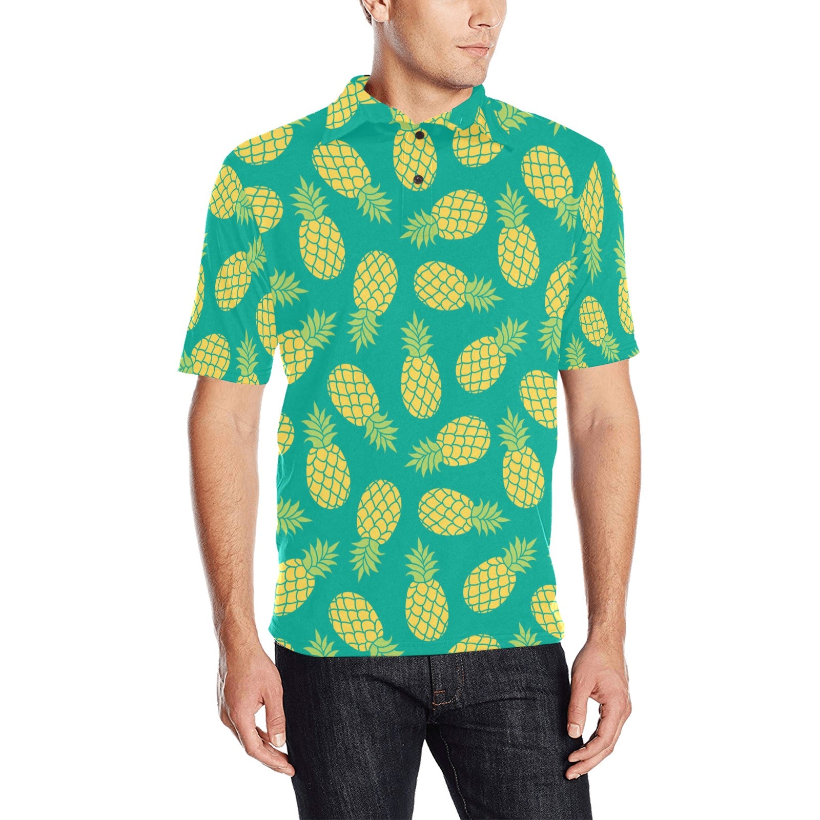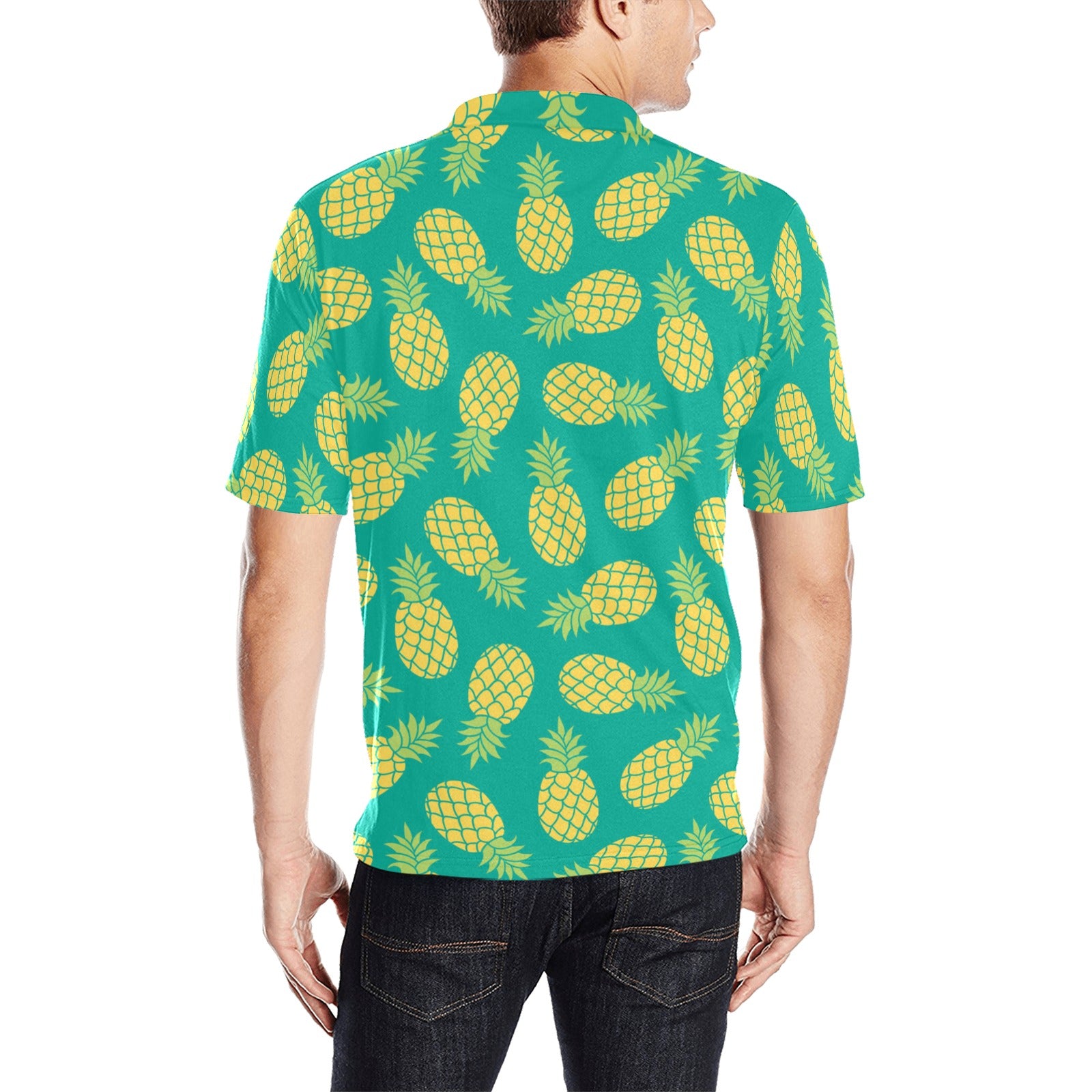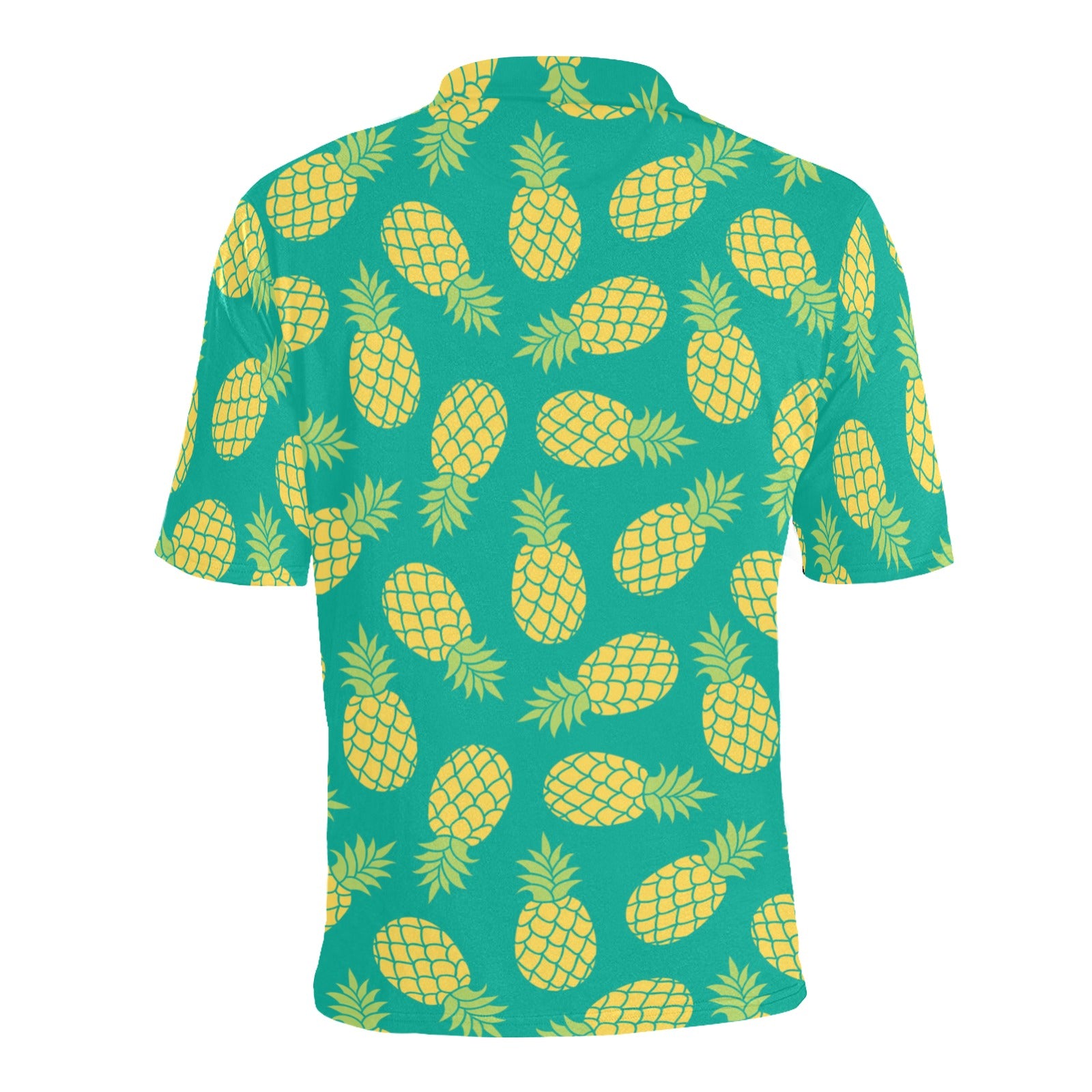 Pineapples pattern green background Men's All Over Print Polo Shirt