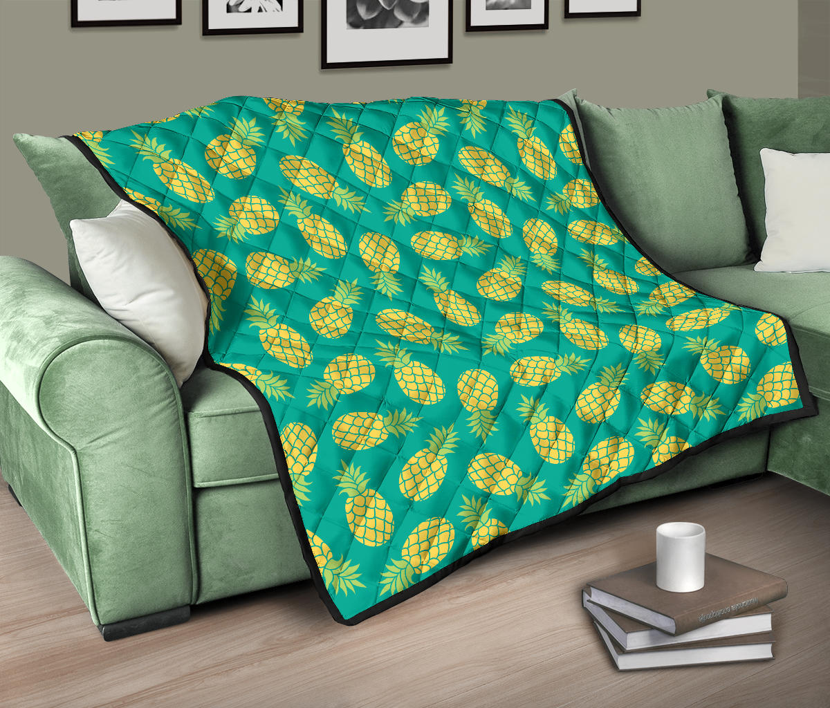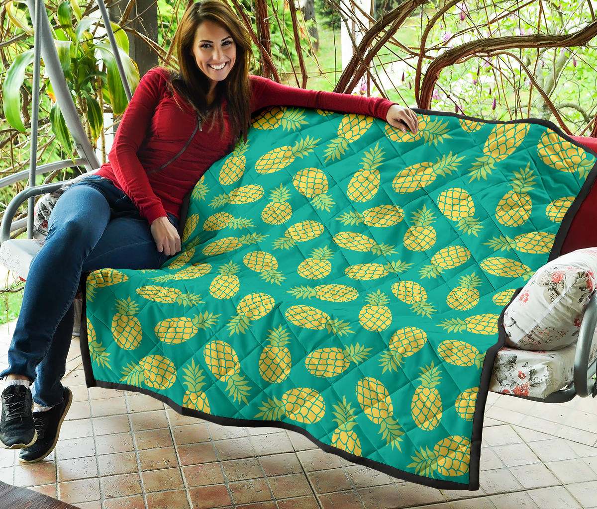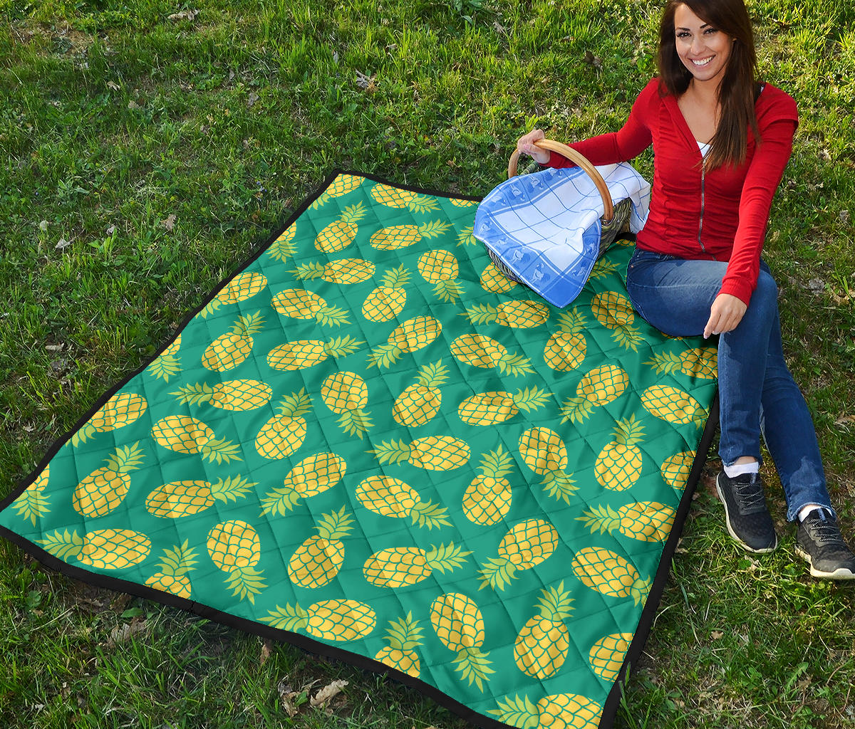 Pineapples Pattern Green Background Premium Quilt is a uniqued design and limited item. It made to order, hand printed, and sewn with love in our factory.
