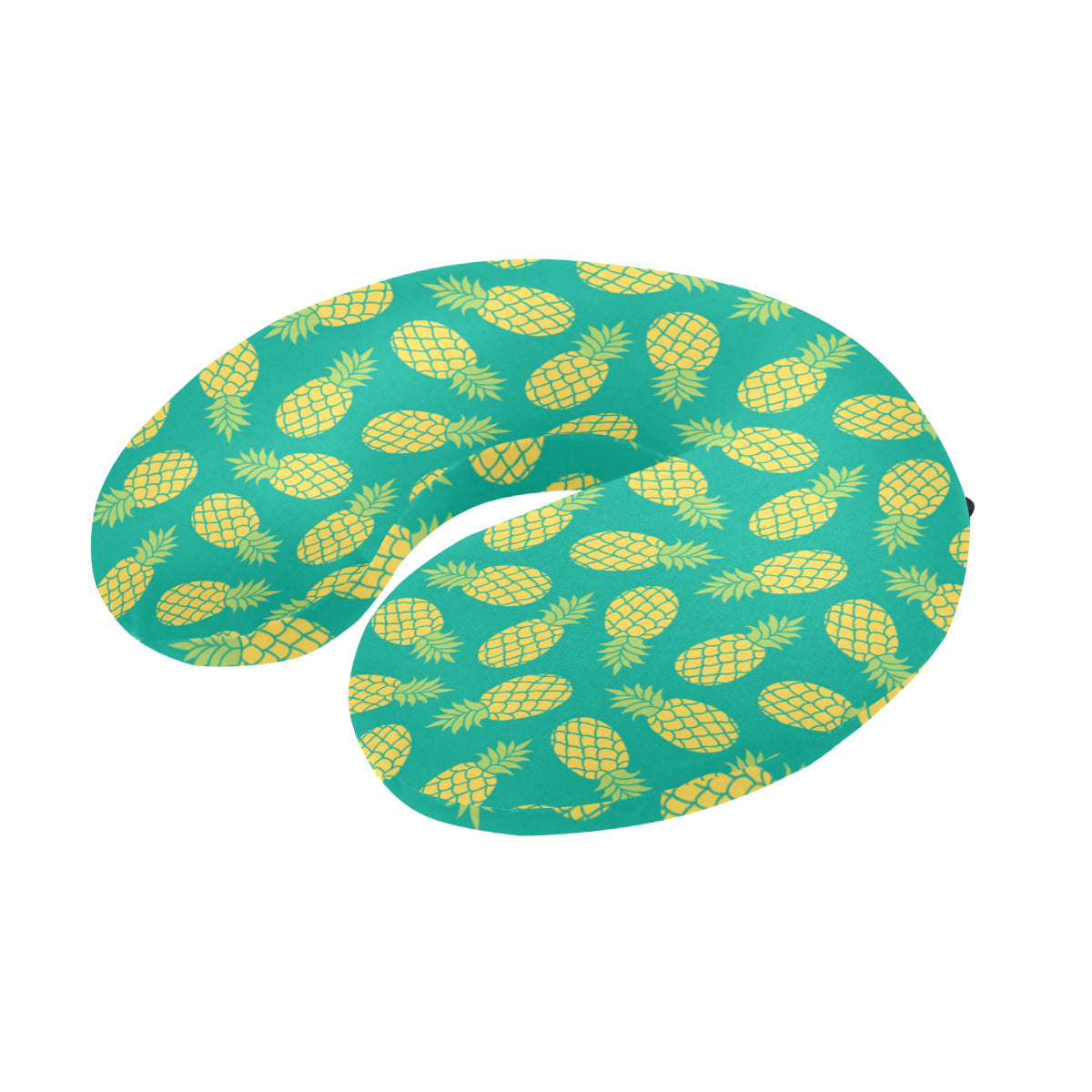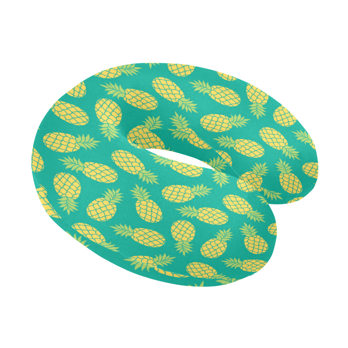 Pineapples pattern green background U-Shaped Travel Neck Pillow