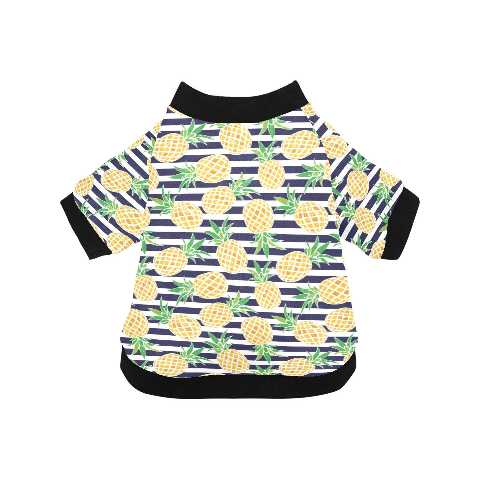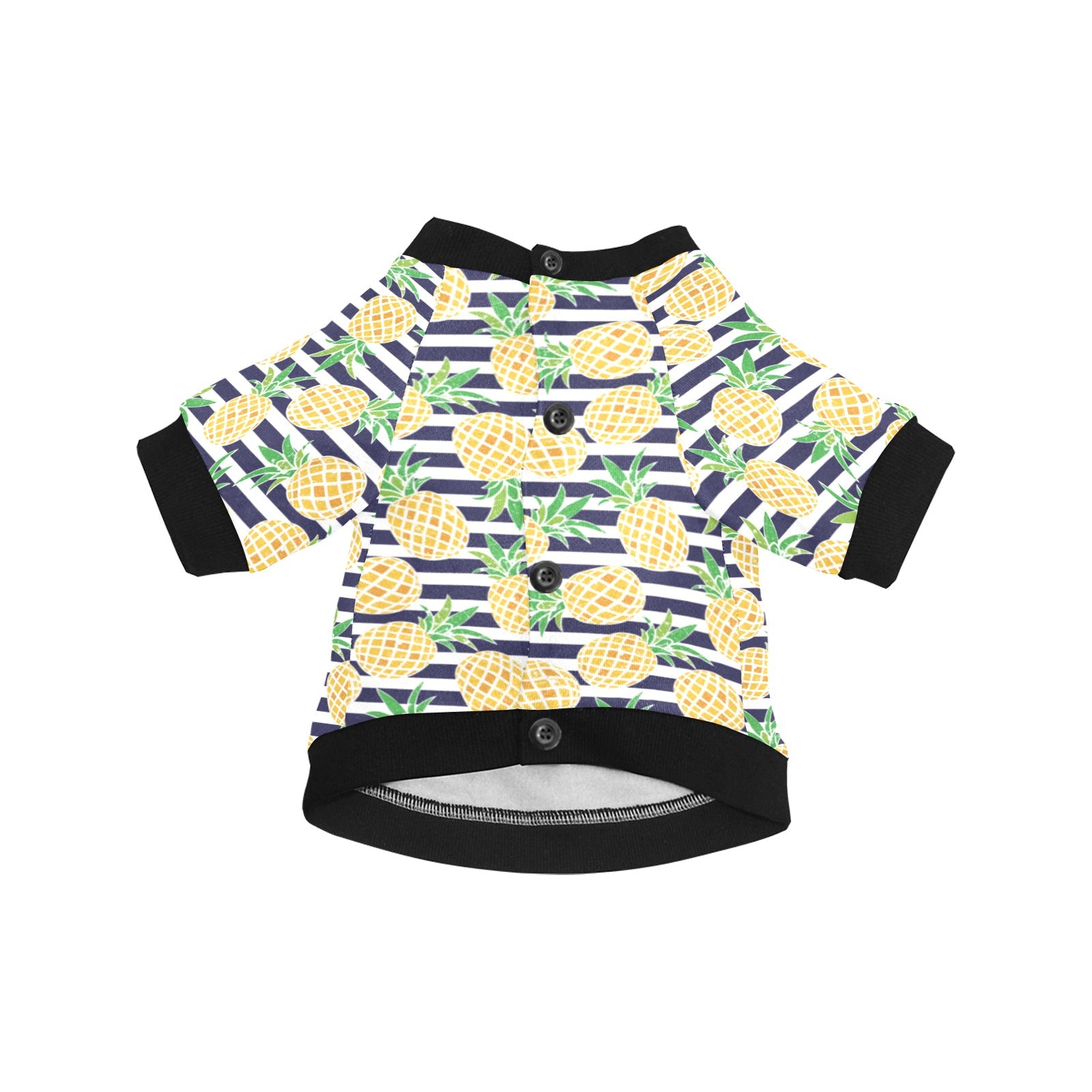Pineapples pattern striped background All Over Print Pet Dog Round Neck Fuzzy Shirt