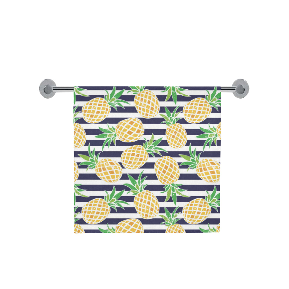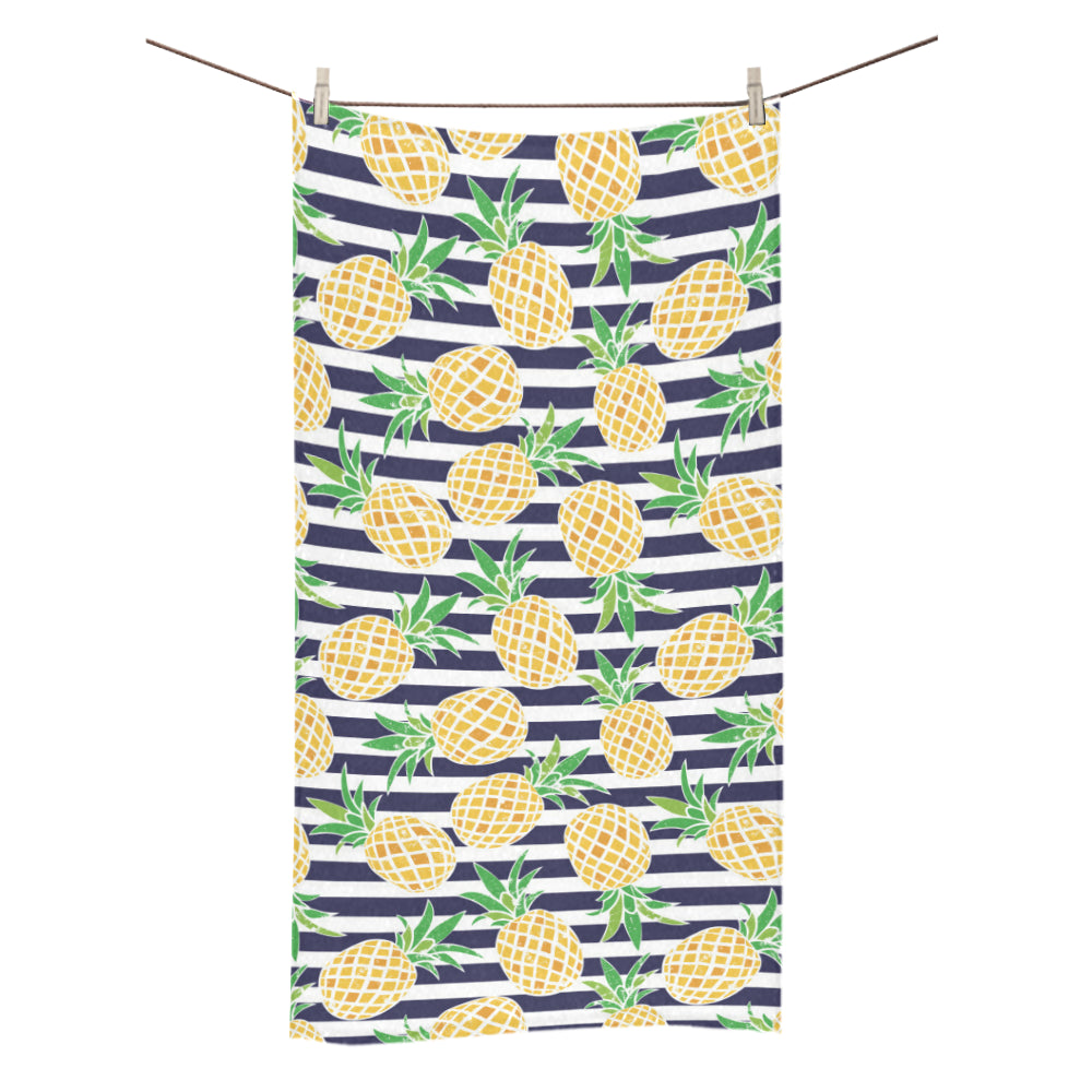 Pineapples pattern striped background Bath Towel 30"x56" is a uniqued design and limited item. It made to order, hand printed, and sewn with love in our factory.