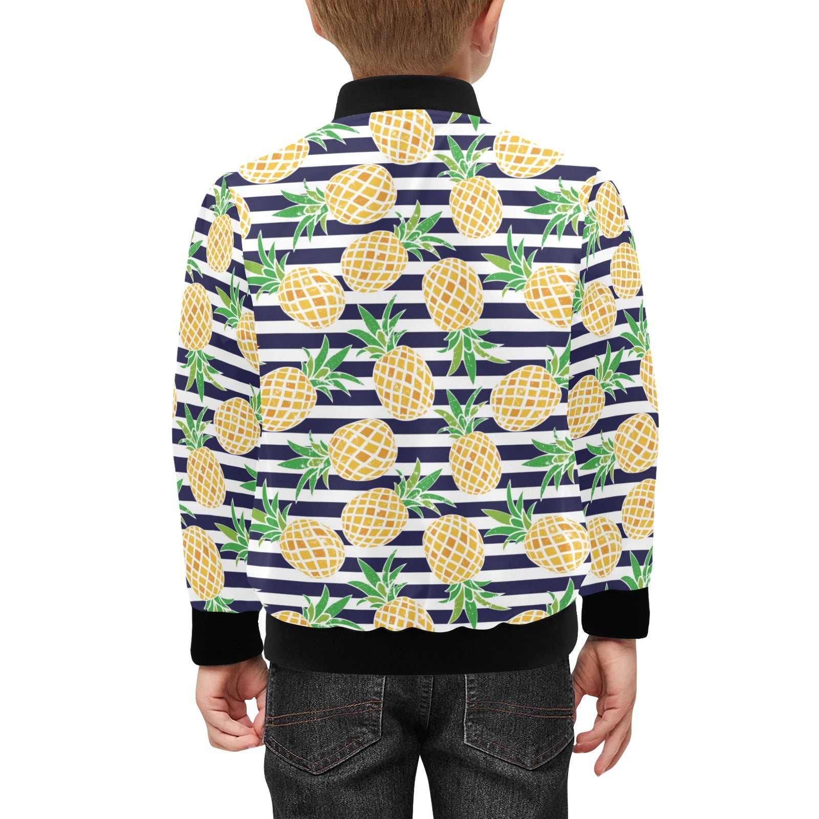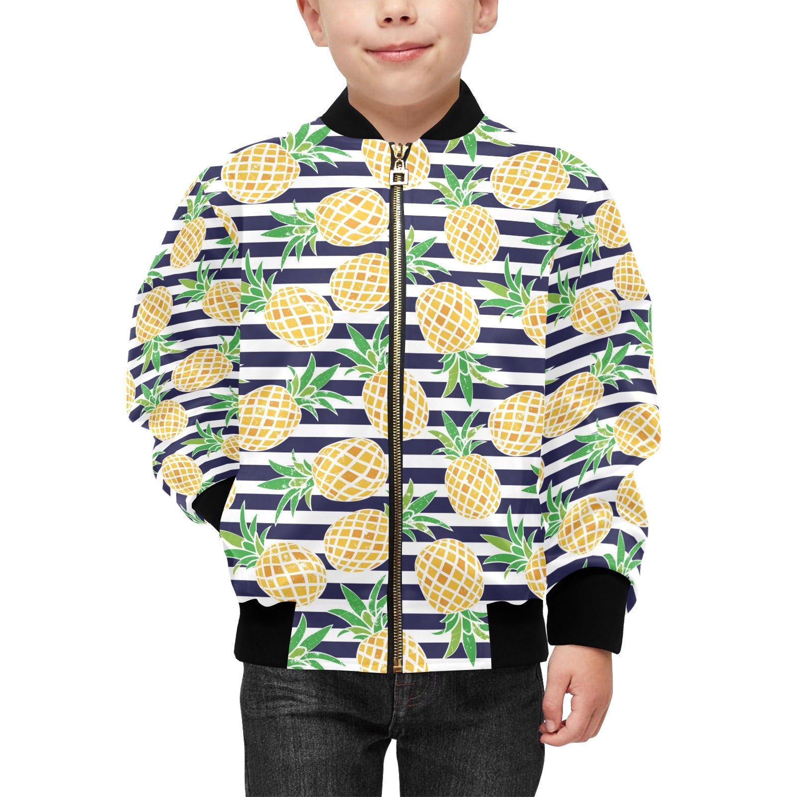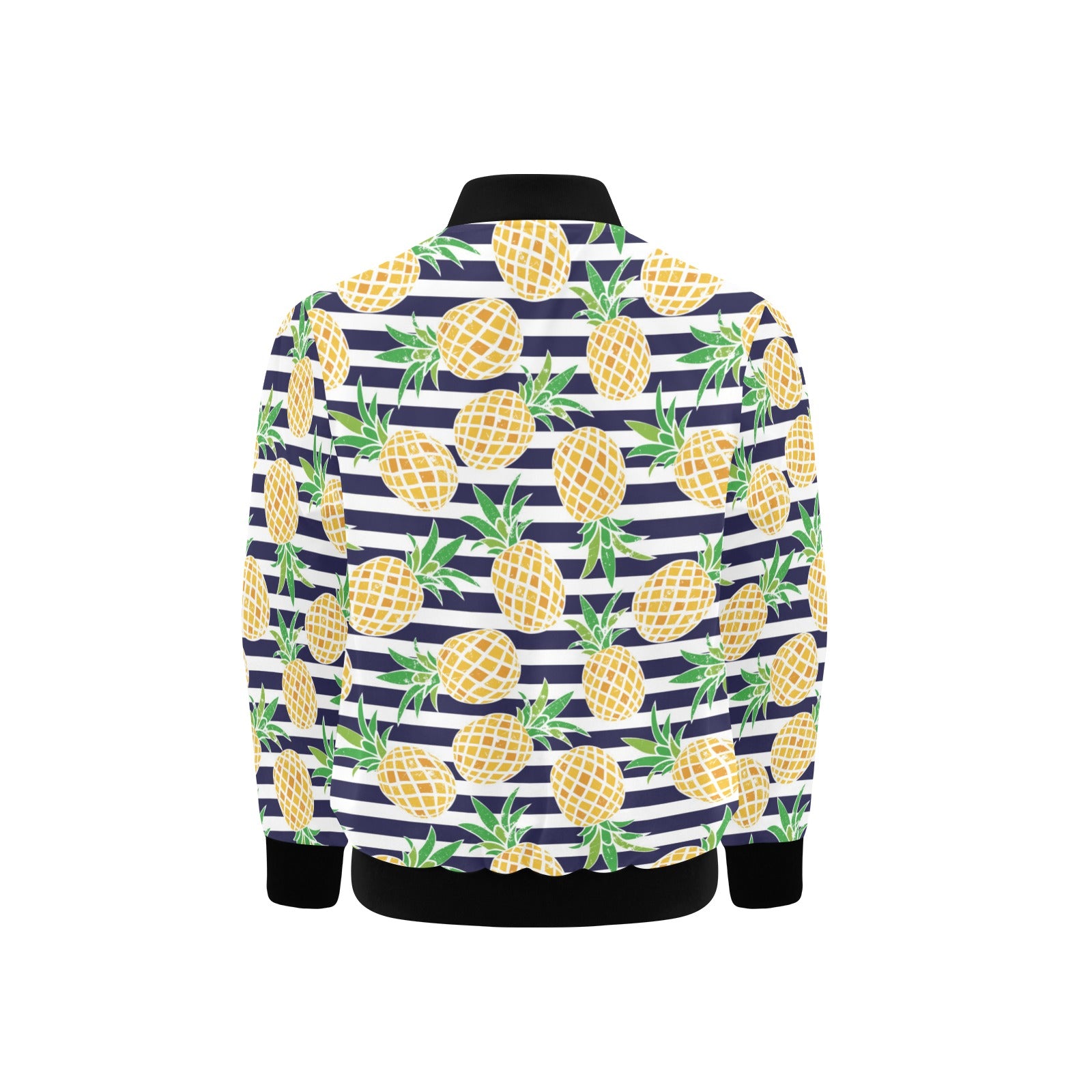 Pineapples pattern striped background Kids' Boys' Girls' Bomber Jacket