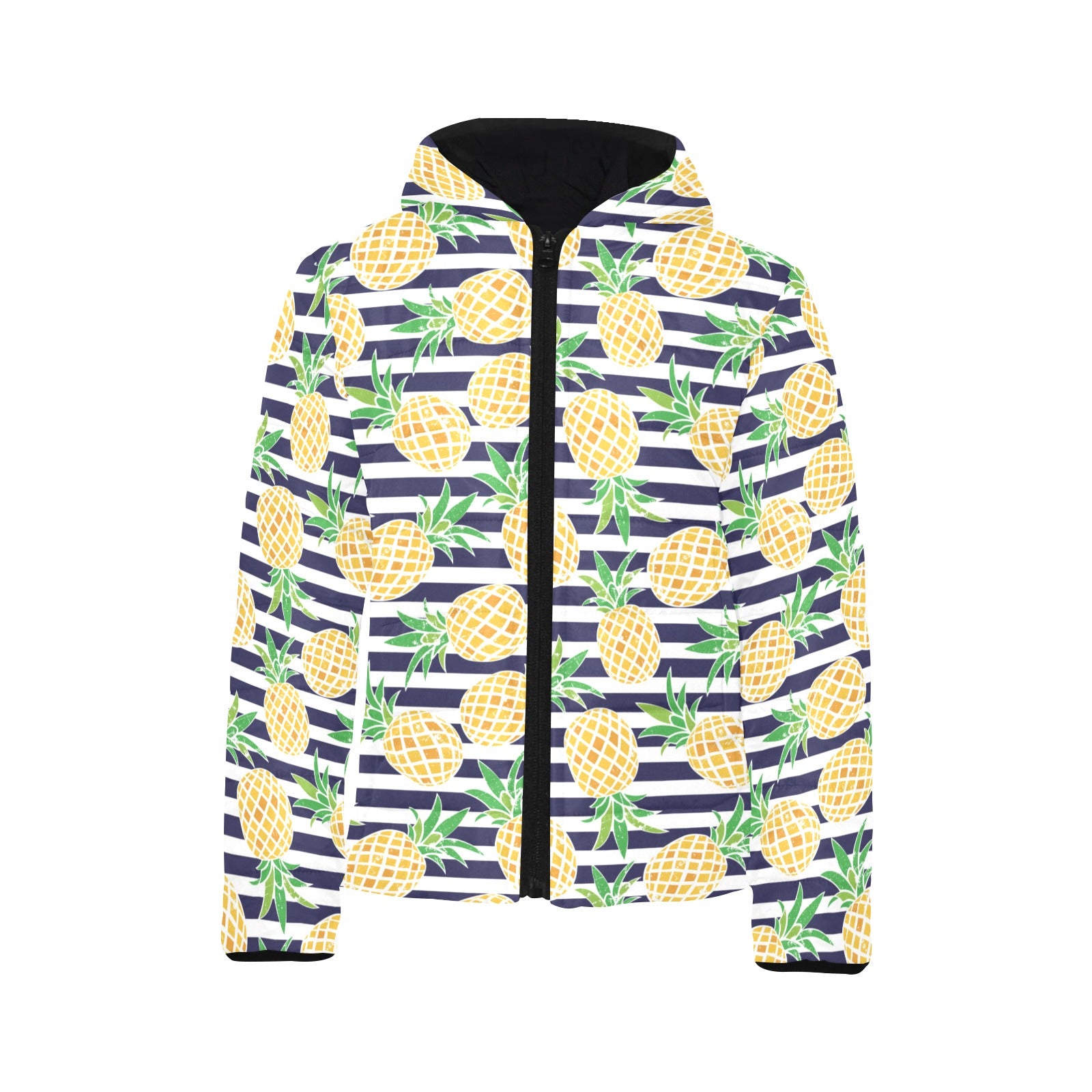 Pineapples pattern striped background Kids' Boys' Girls' Padded Hooded Jacket