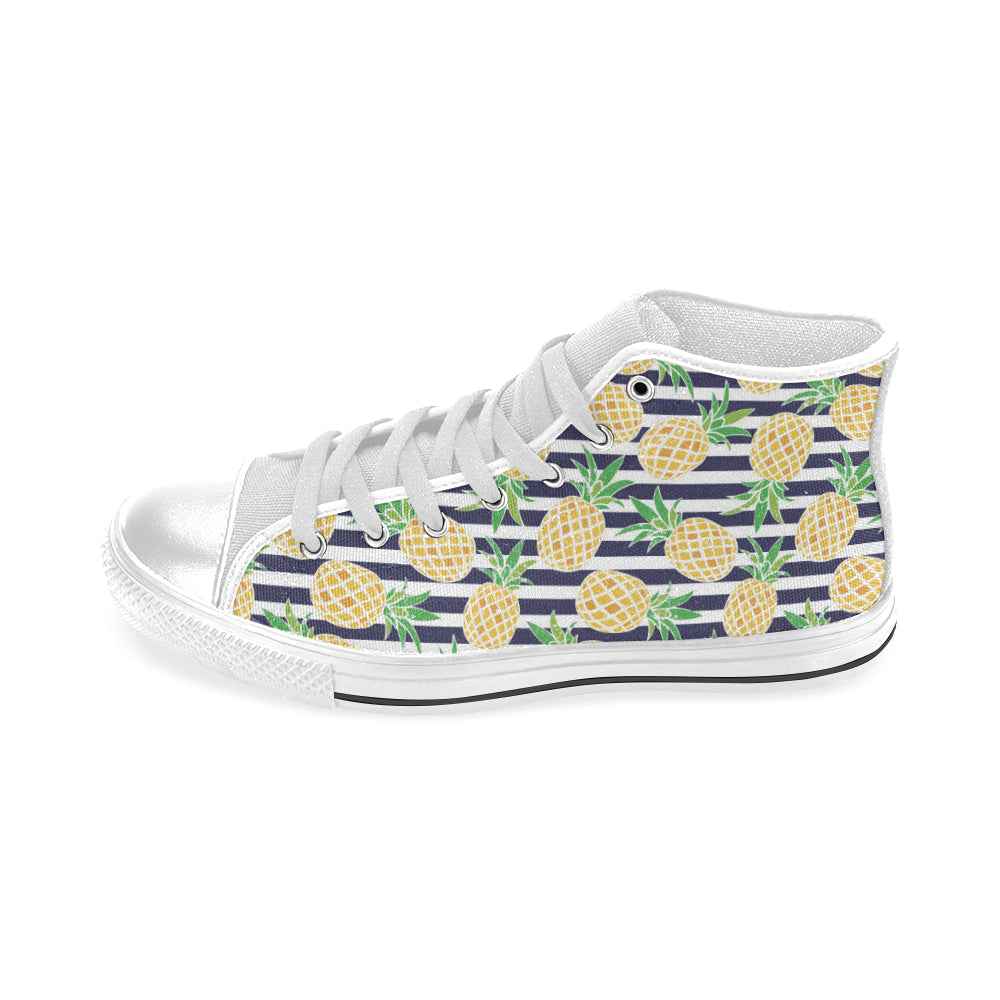 Pineapples pattern striped background Men's High Top Canvas Canvas Shoes White