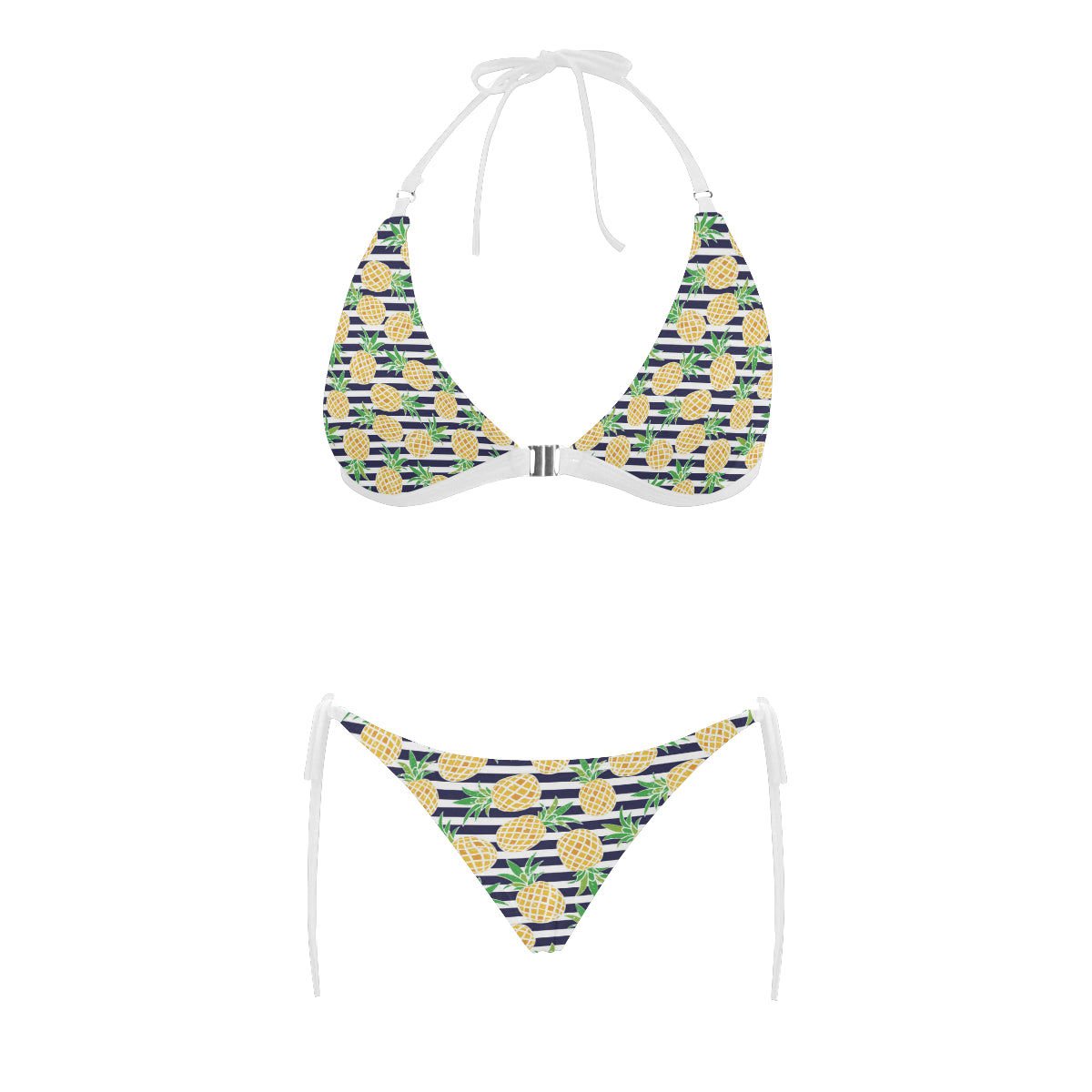 Pineapples pattern striped background Sexy Bikinis Two-Piece Swimsuits are uniqued design and limited item. It made to order, hand printed, and sewn with love in our factory.