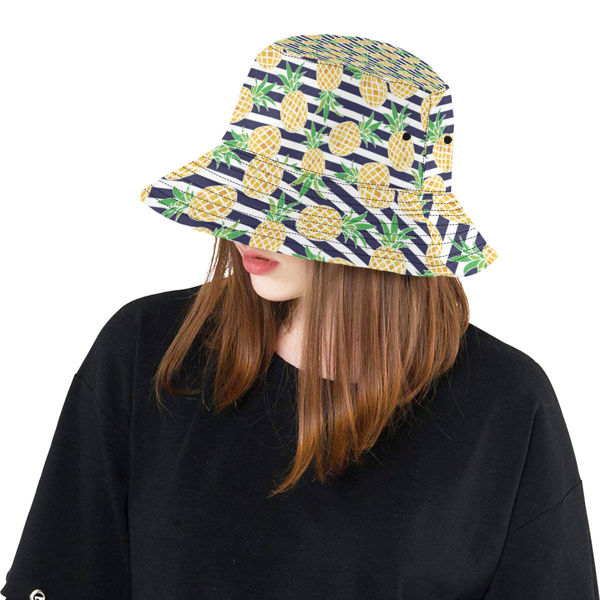 Pineapples pattern striped background Unisex Bucket Hat is a uniqued design and limited item. It made to order, hand printed, and sewn with love in our factory.