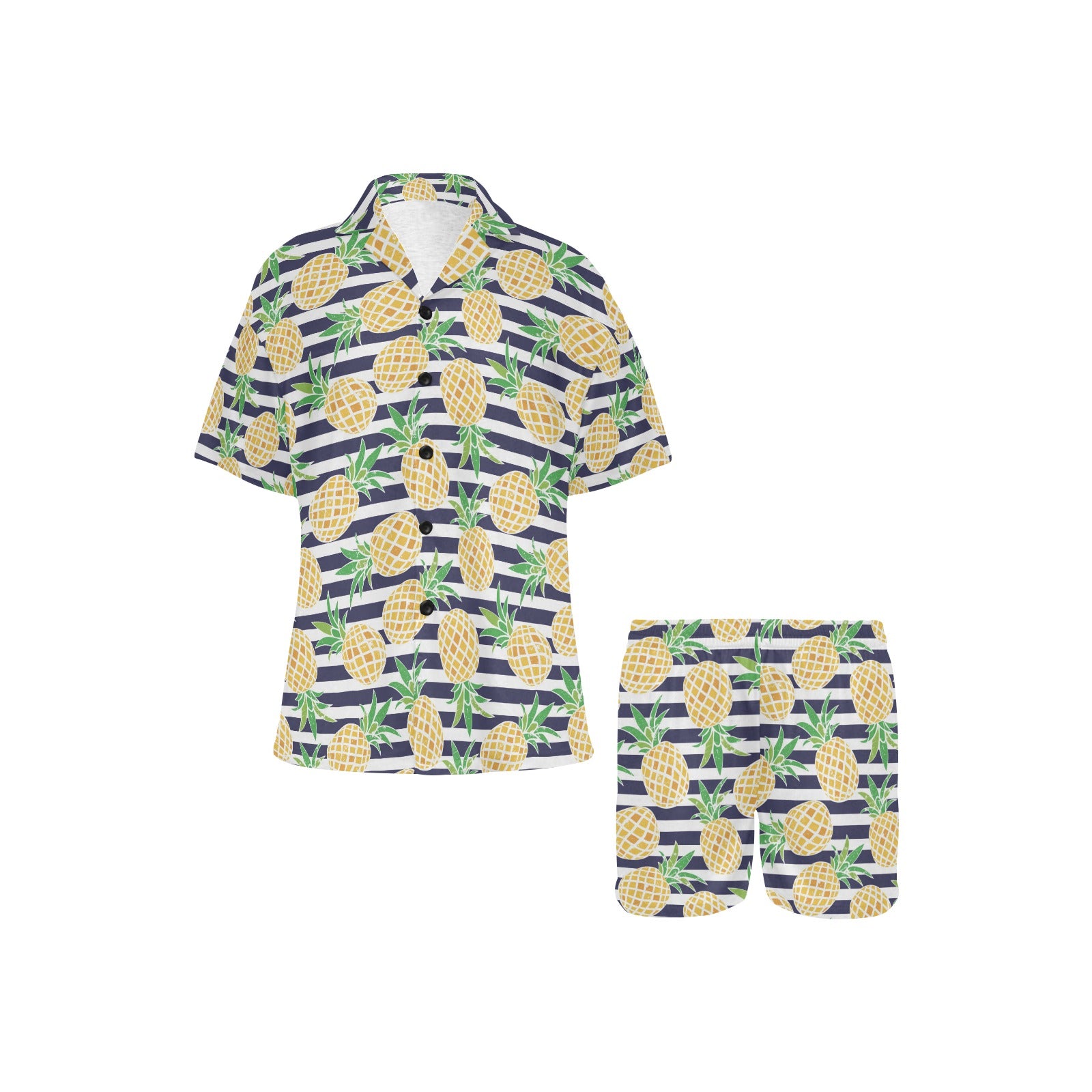 Pineapples pattern striped background Women's V-Neck Short Pajama Set