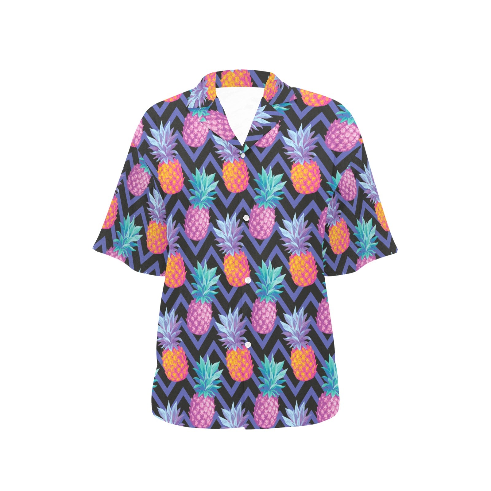 Pineapples pattern zigzag background Women's All Over Print Hawaiian Shirt