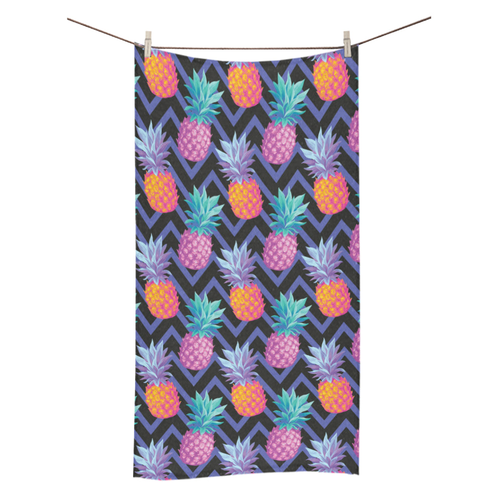 Pineapples pattern zigzag background Bath Towel 30"x56" is a uniqued design and limited item. It made to order, hand printed, and sewn with love in our factory.
