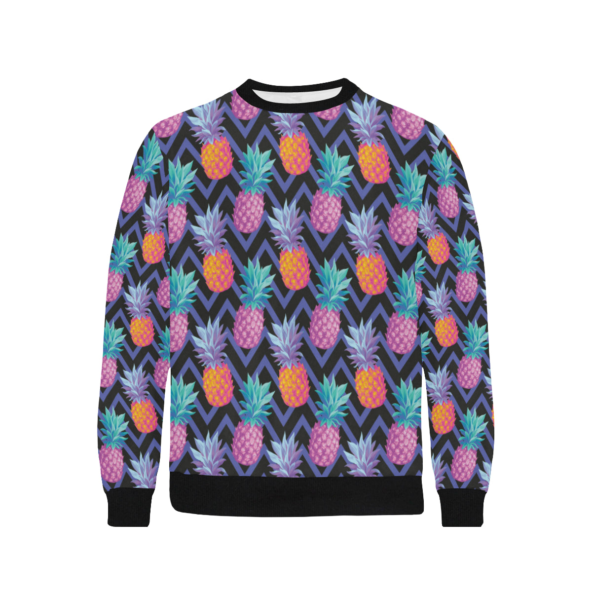 Pineapples pattern zigzag background Men's Crew Neck Sweatshirt is a uniqued design and limited item. It made to order, hand printed, and sewn with love in our factory.