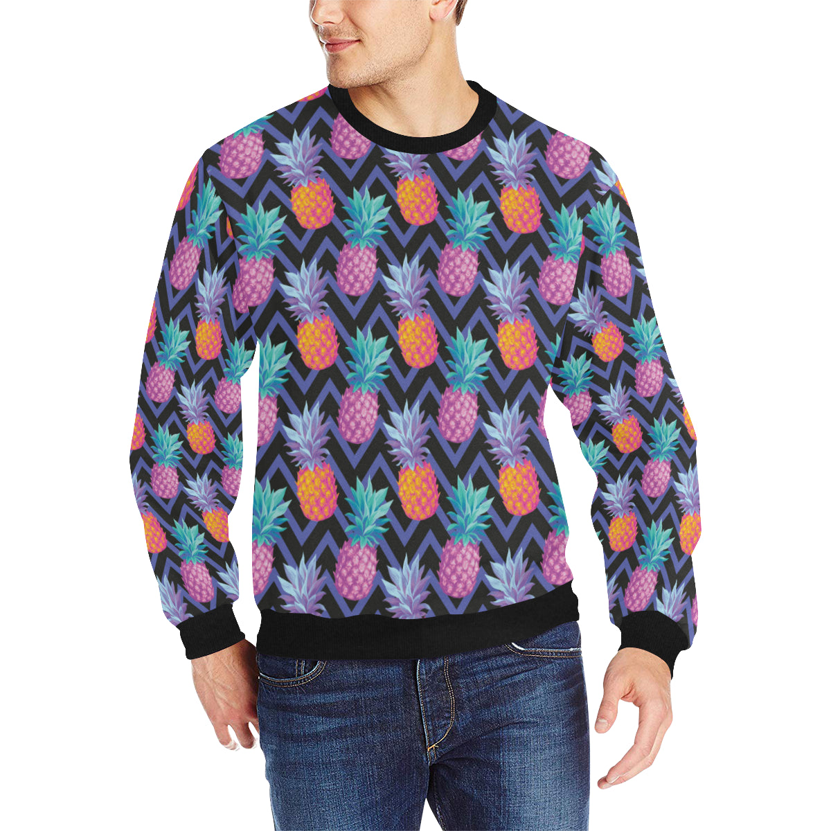 Pineapples pattern zigzag background Men's Crew Neck Sweatshirt
