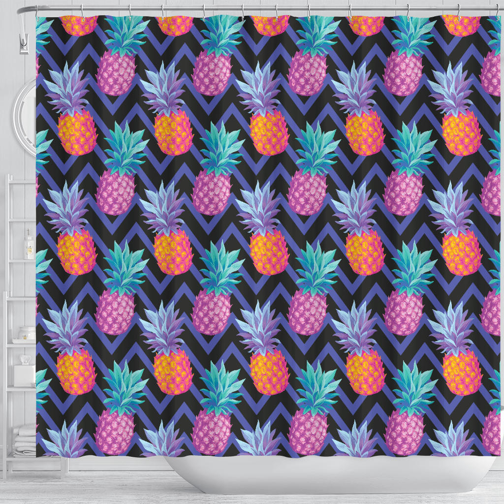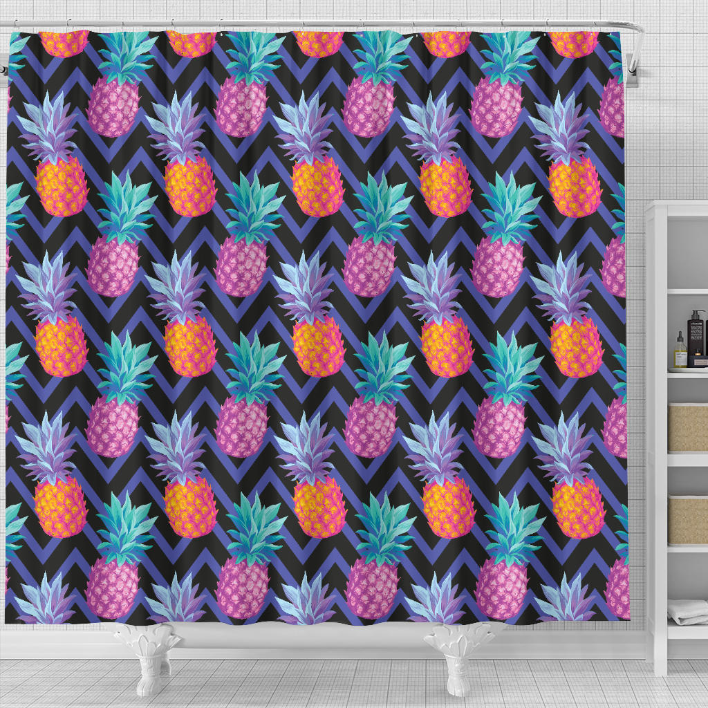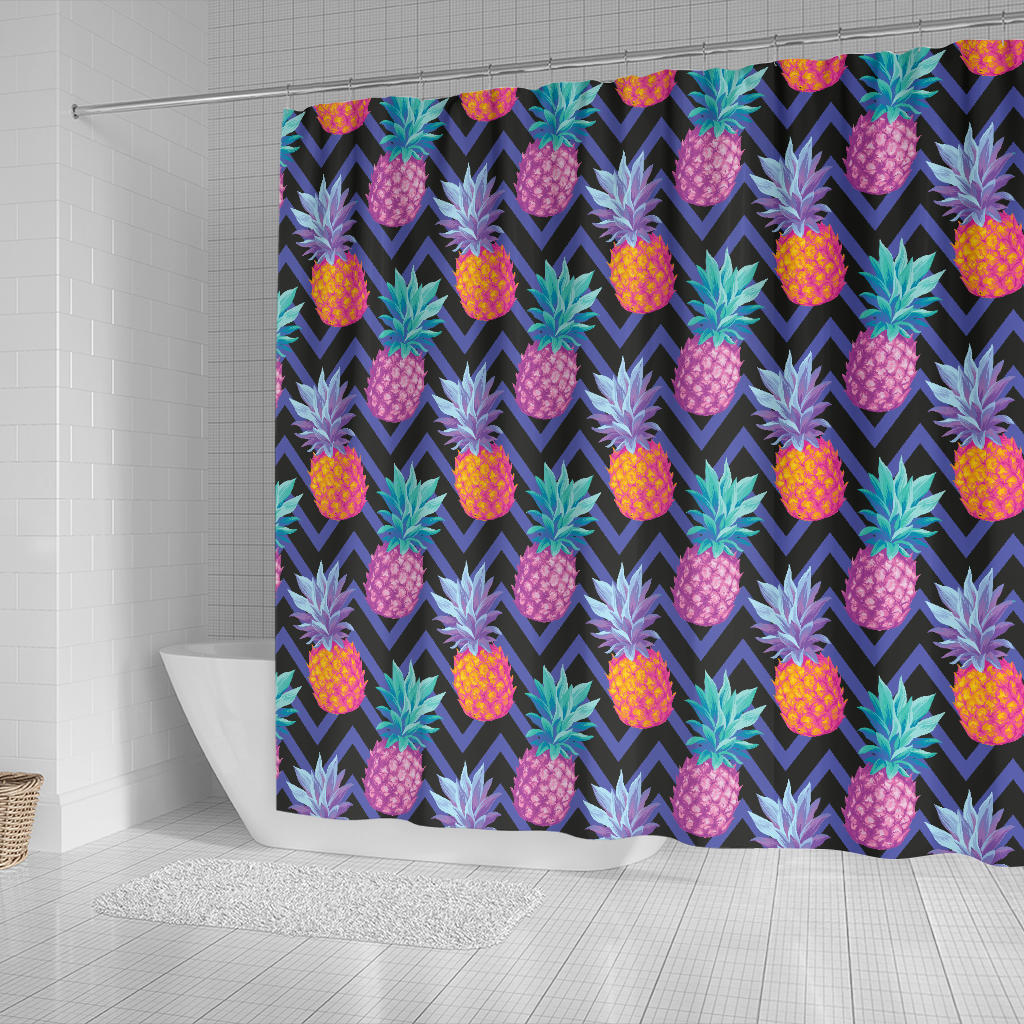 Pineapples Pattern Zigzag Background Shower Curtain Fulfilled In US