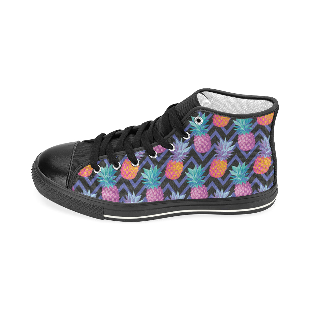 Pineapples pattern zigzag background Women's High Top Canvas Shoes Black