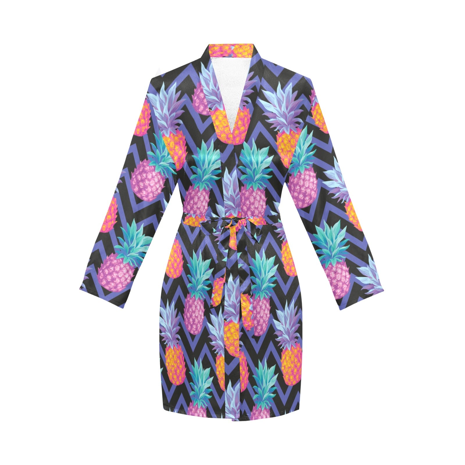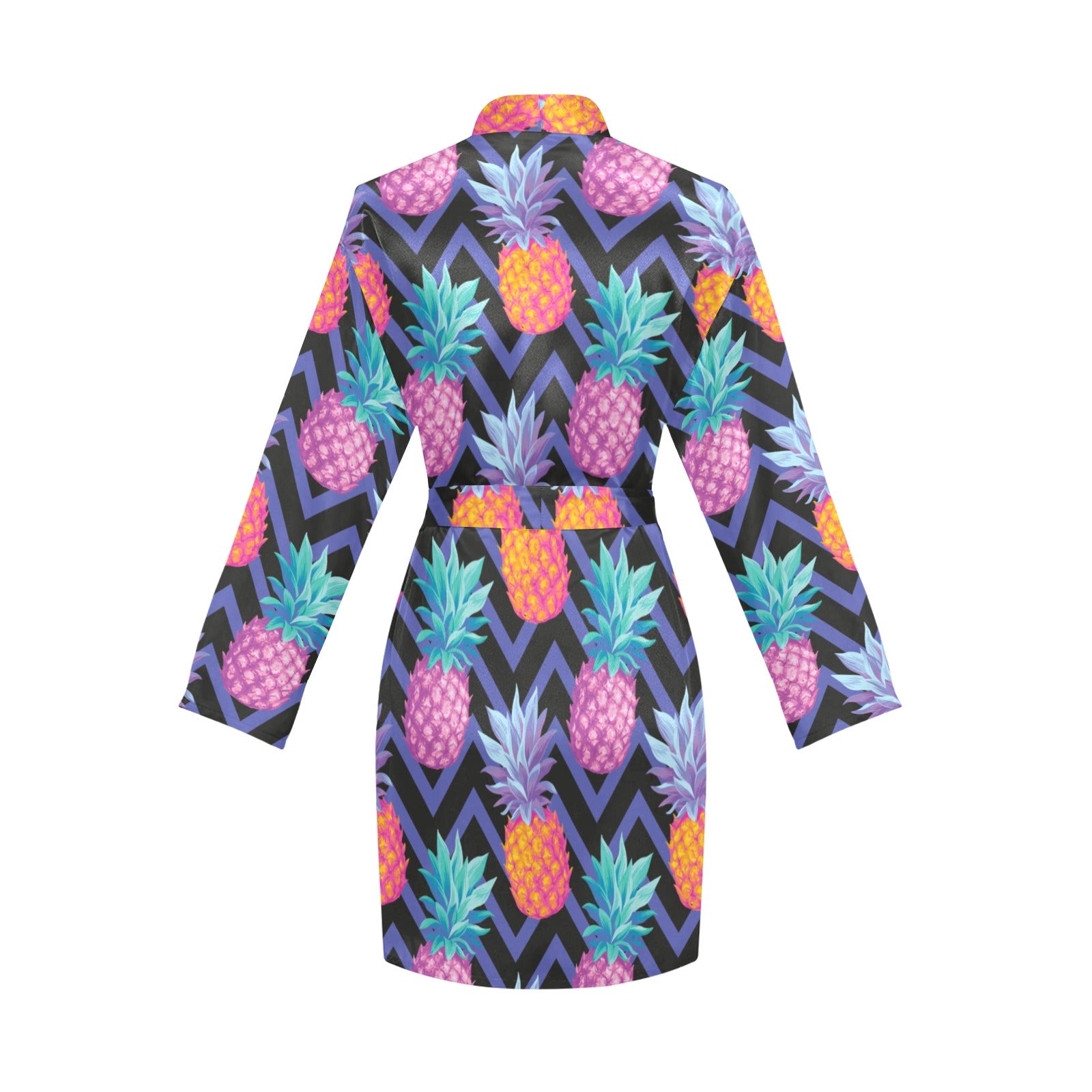 Pineapples pattern zigzag background Women's Long Sleeve Belted Night Robe