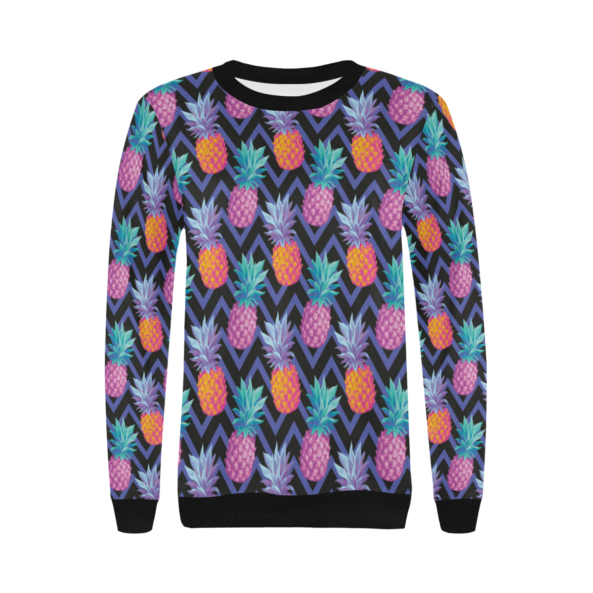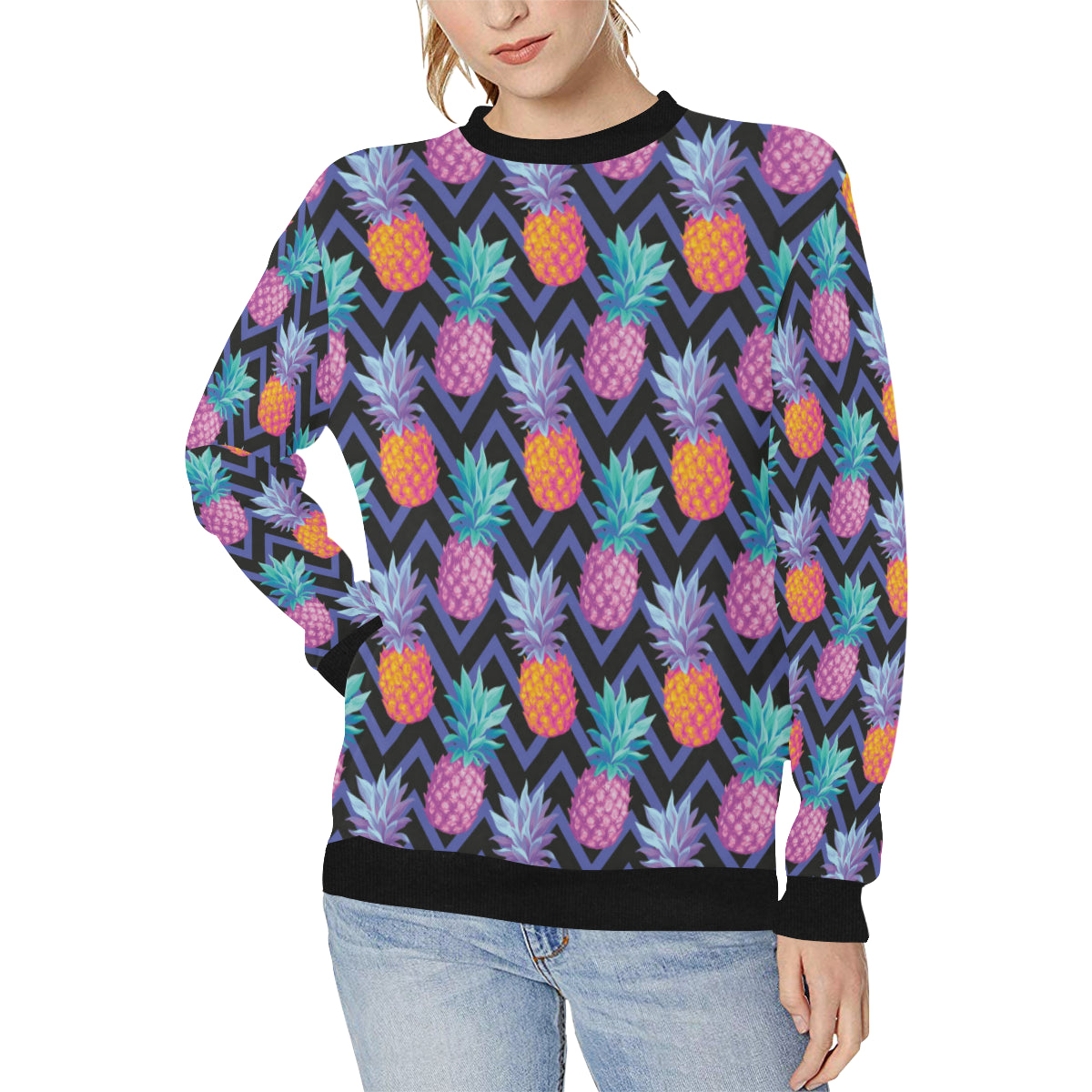 Pineapples pattern zigzag background Women's Crew Neck Sweatshirt