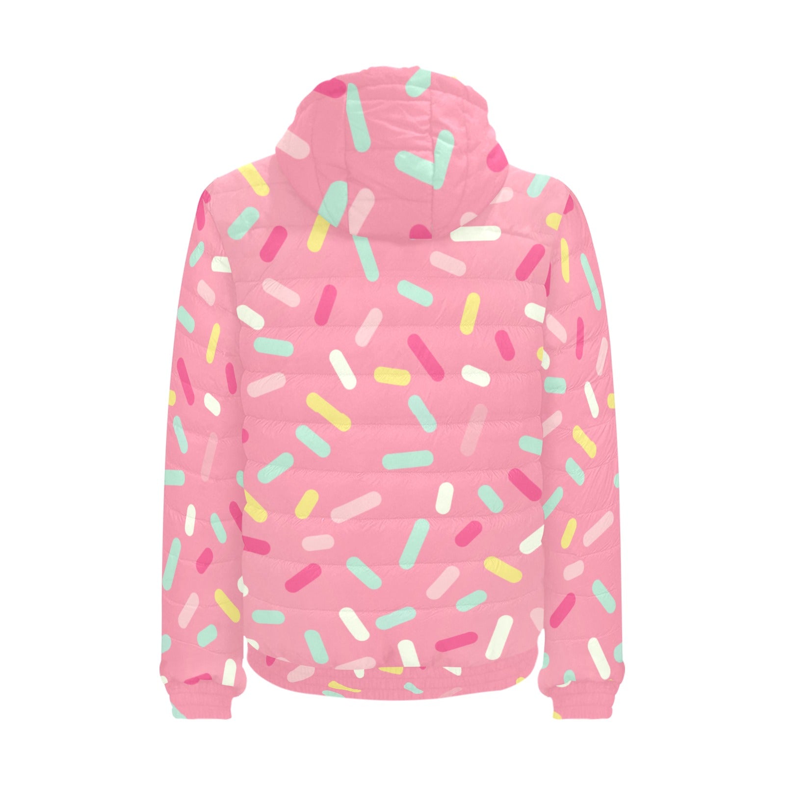 Pink donut glaze candy pattern Men's Padded Hooded Jacket