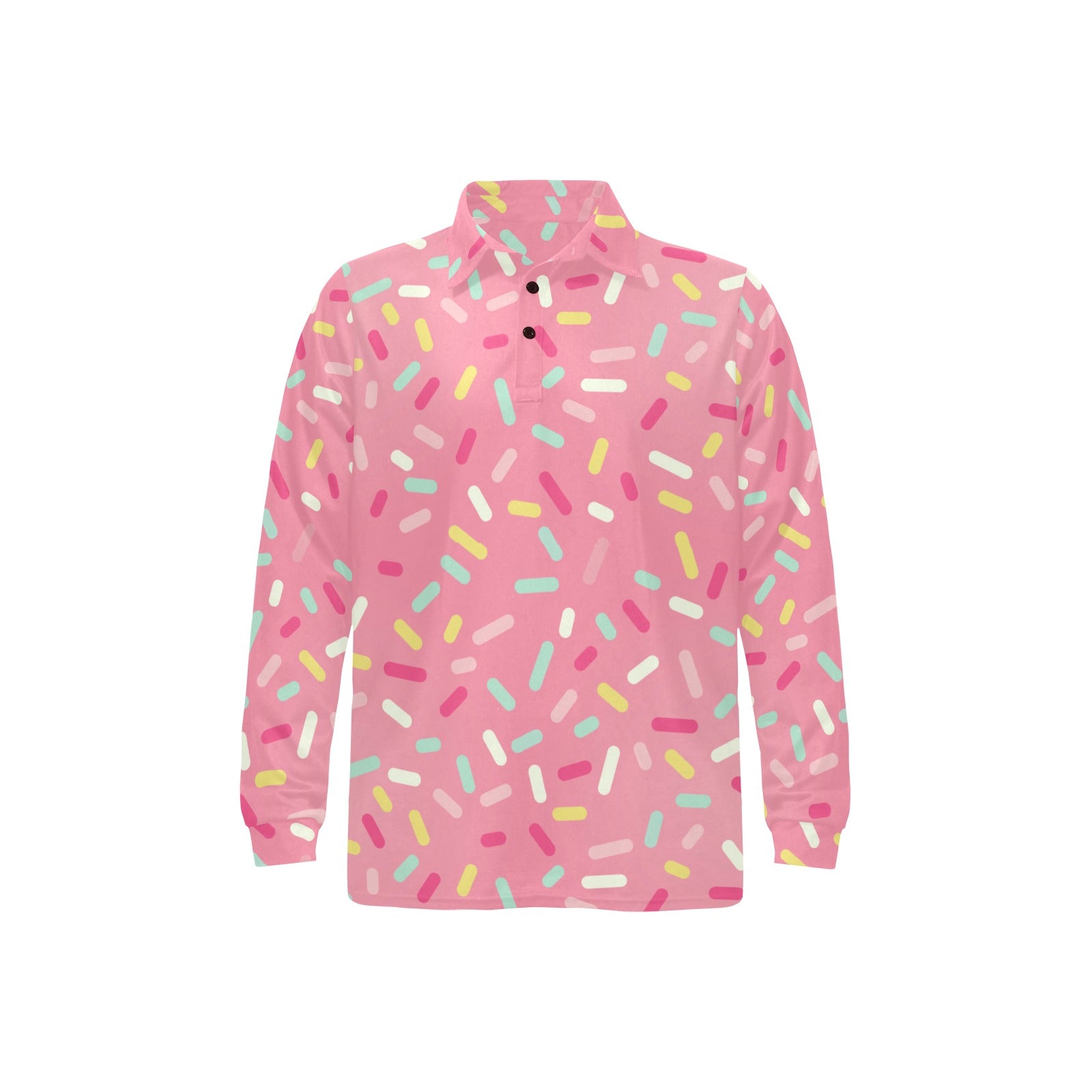 Pink donut glaze candy pattern Men's Long Sleeve Polo Shirt