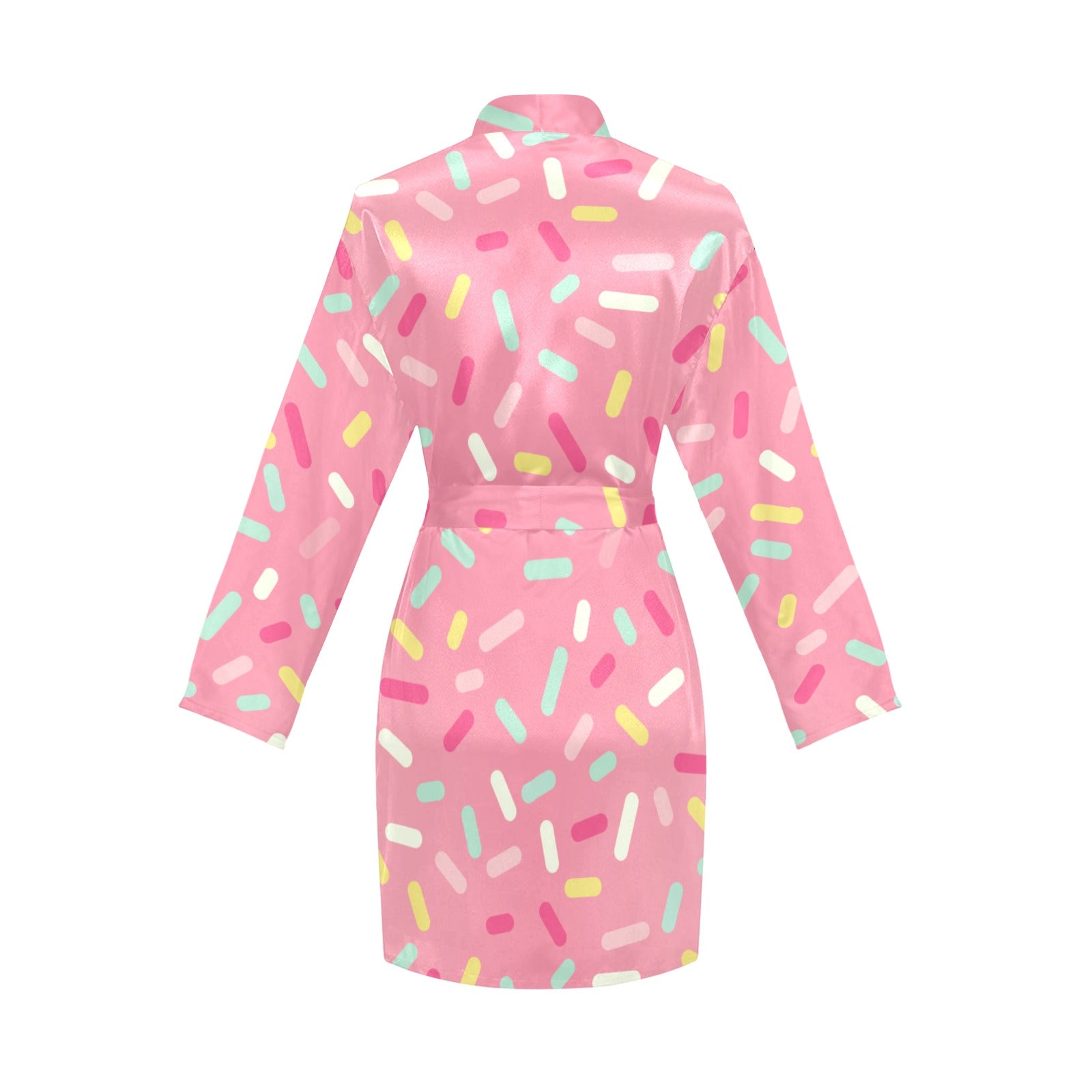 Pink donut glaze candy pattern Women's Long Sleeve Belted Night Robe