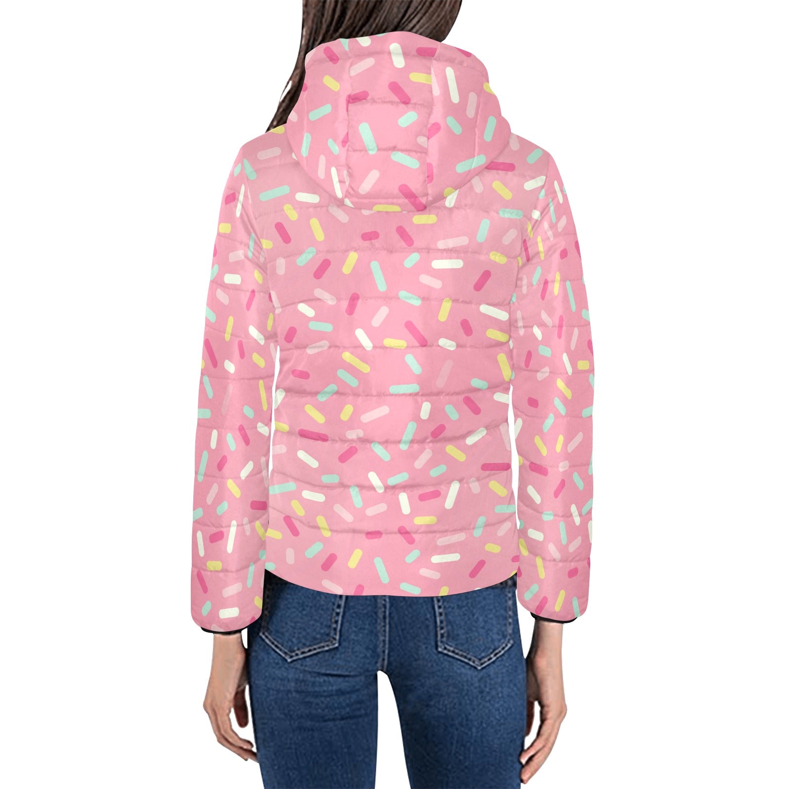 Pink donut glaze candy pattern Women's Padded Hooded Jacket