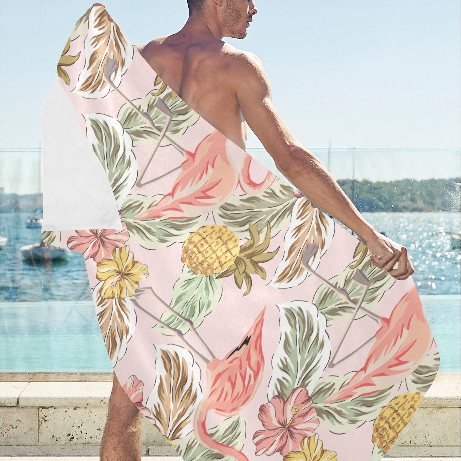 Pink flamingo birds pineapples hibiscus flower pat Beach Towel