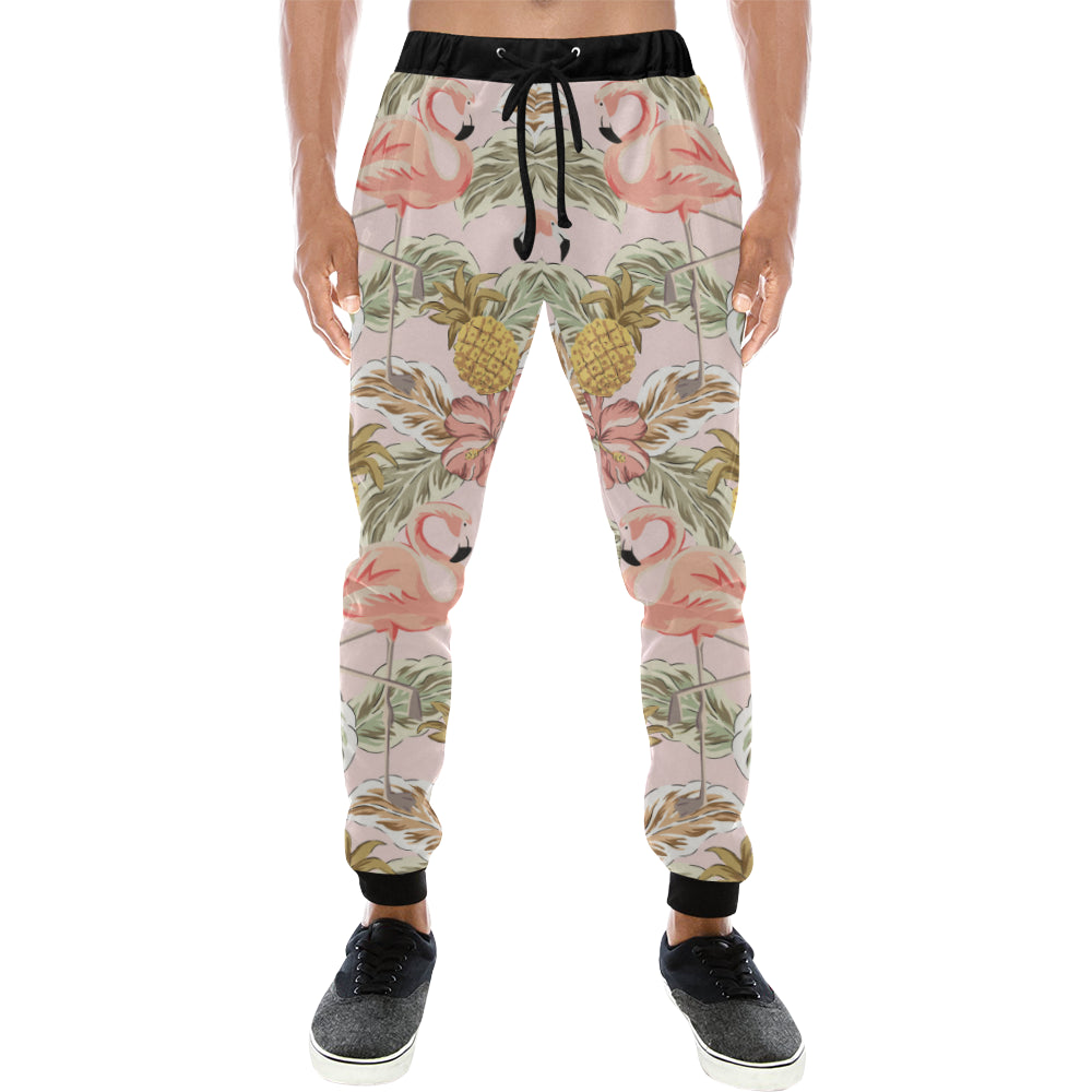 Pink flamingo birds pineapples hibiscus flower pat Unisex Casual Sweatpants