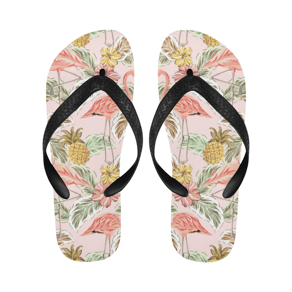 Pink flamingo birds pineapples hibiscus flower pat Unisex Flip Flops