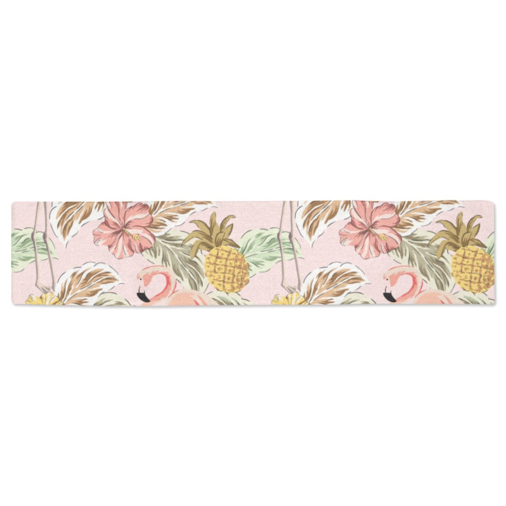 Pink flamingo birds pineapples hibiscus flower pat Table Runner