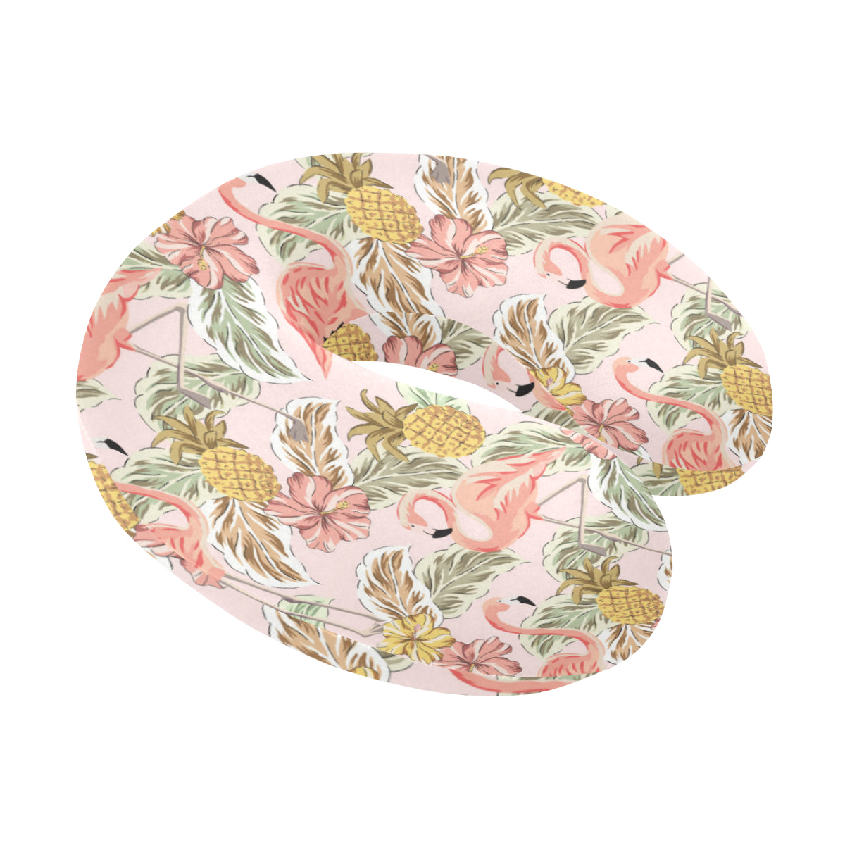 Pink flamingo birds pineapples hibiscus flower pat U-Shaped Travel Neck Pillow