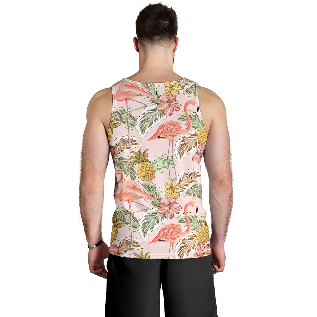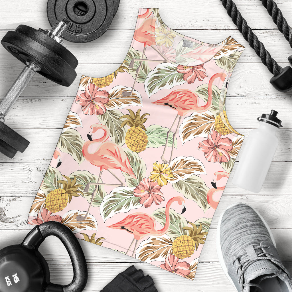 Pink flamingo birds pineapples hibiscus flower pattern Men Tank Top