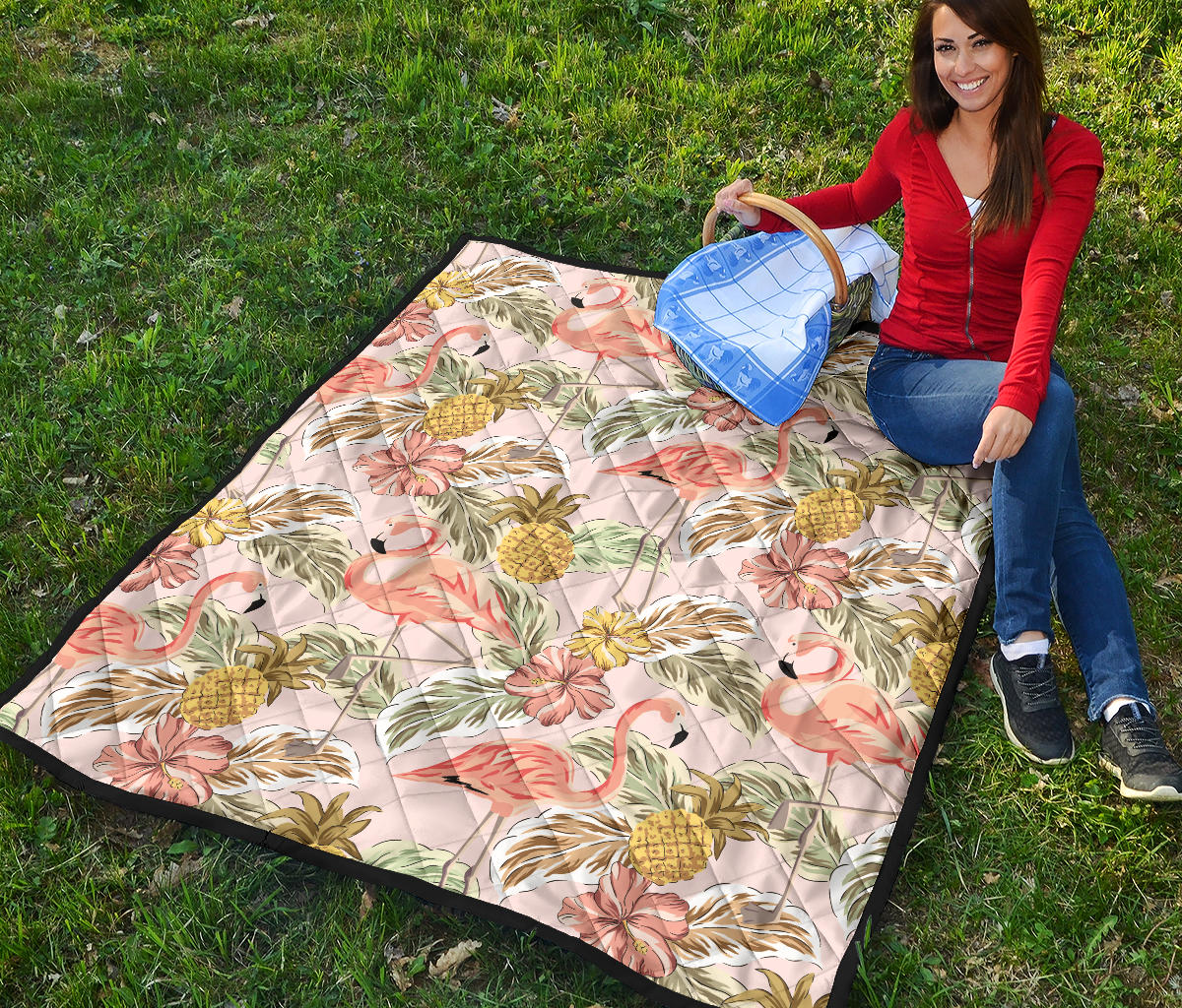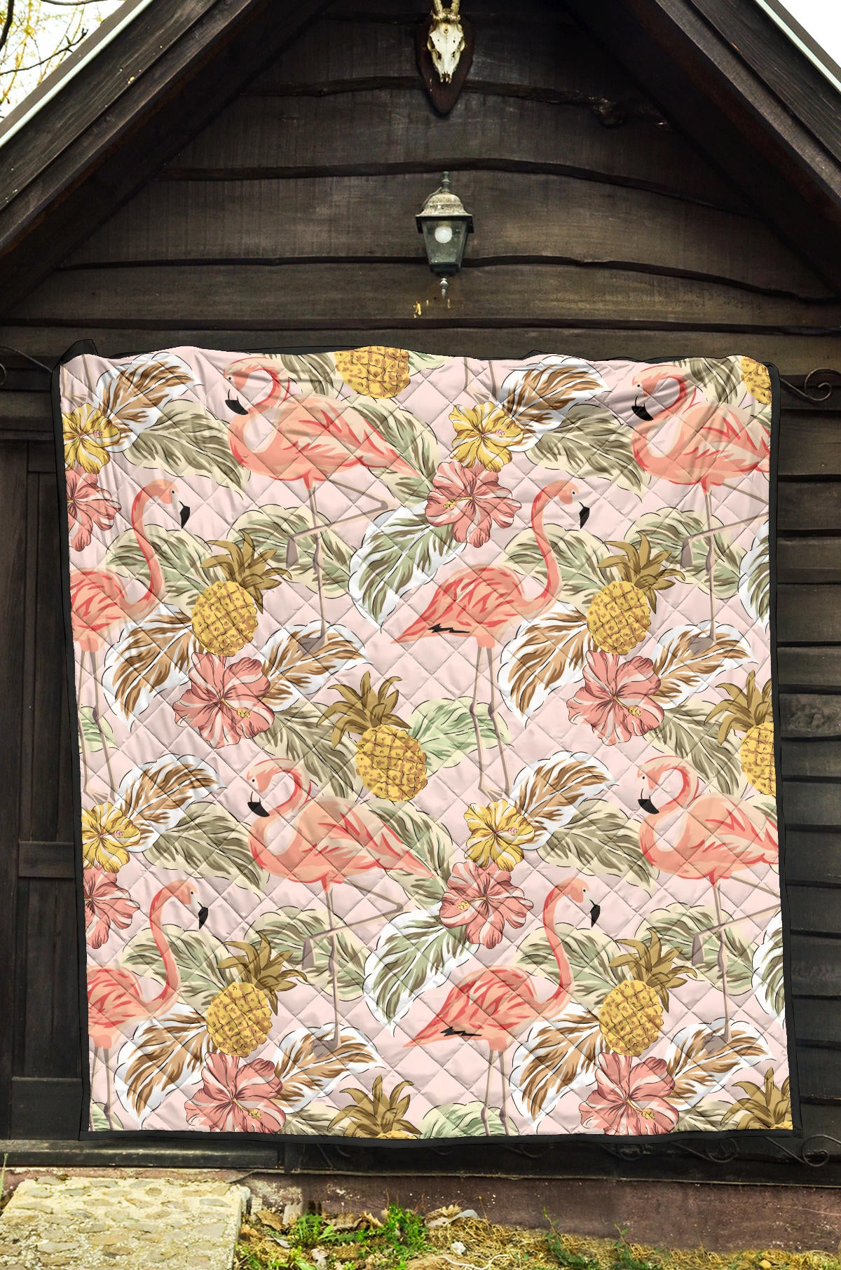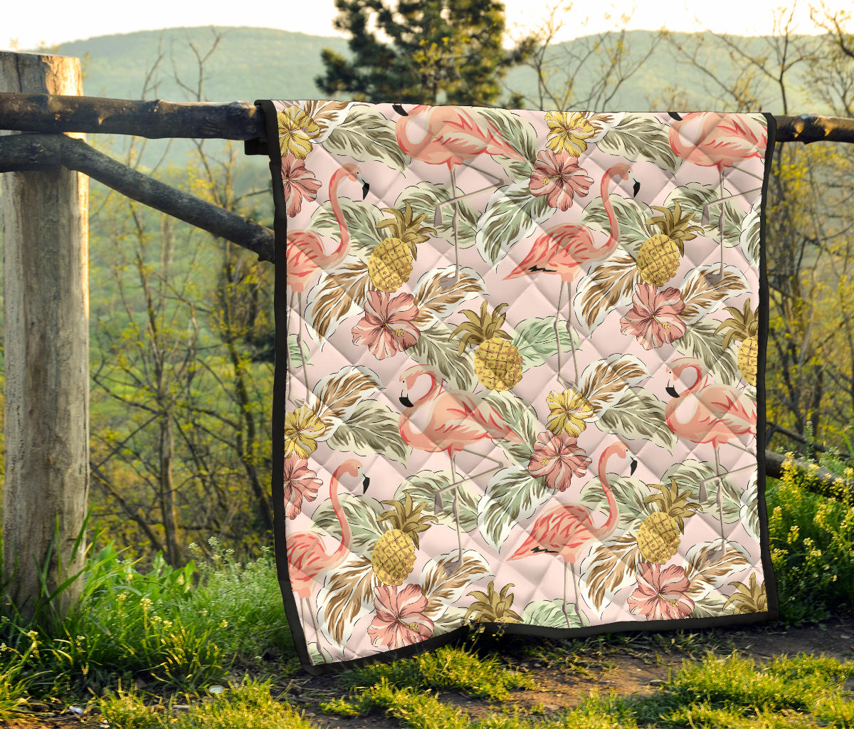 Pink Flamingo Birds Pineapples Hibiscus Flower Pattern Premium Quilt is a uniqued design and limited item. It made to order, hand printed, and sewn with love in our factory.