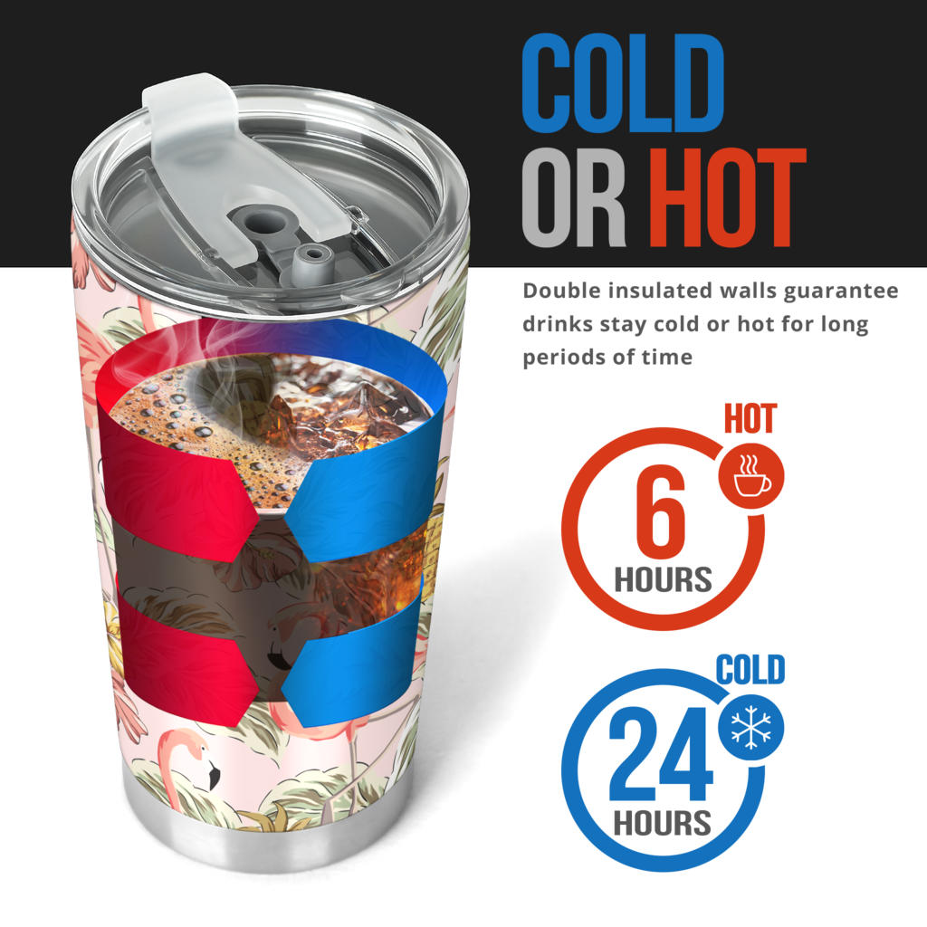 Pink flamingo birds pineapples hibiscus flower pattern Tumbler is a uniqued design and limited item. It made to order and hand printed with love in our factory.
