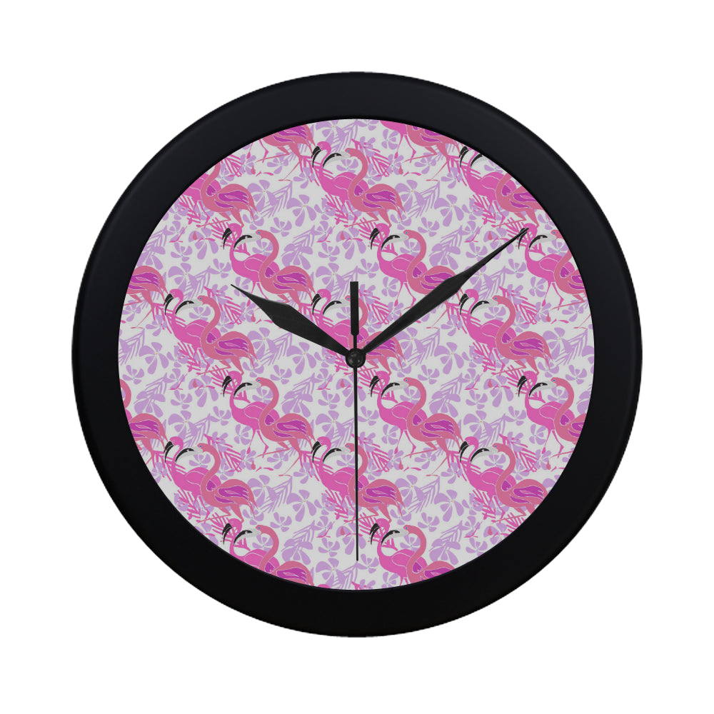 Pink flamingo flower pattern Elegant Black Wall Clock