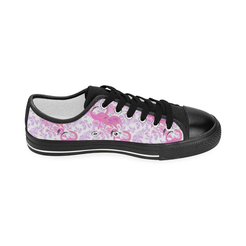 Pink flamingo flower pattern Kids' Boys' Girls' Low Top Canvas Shoes Black