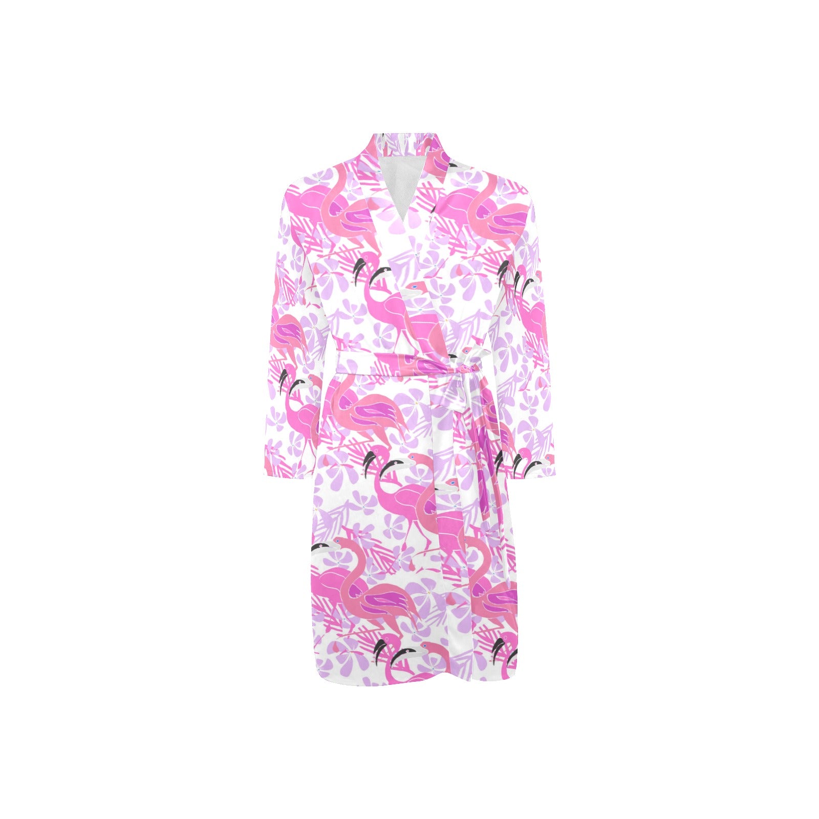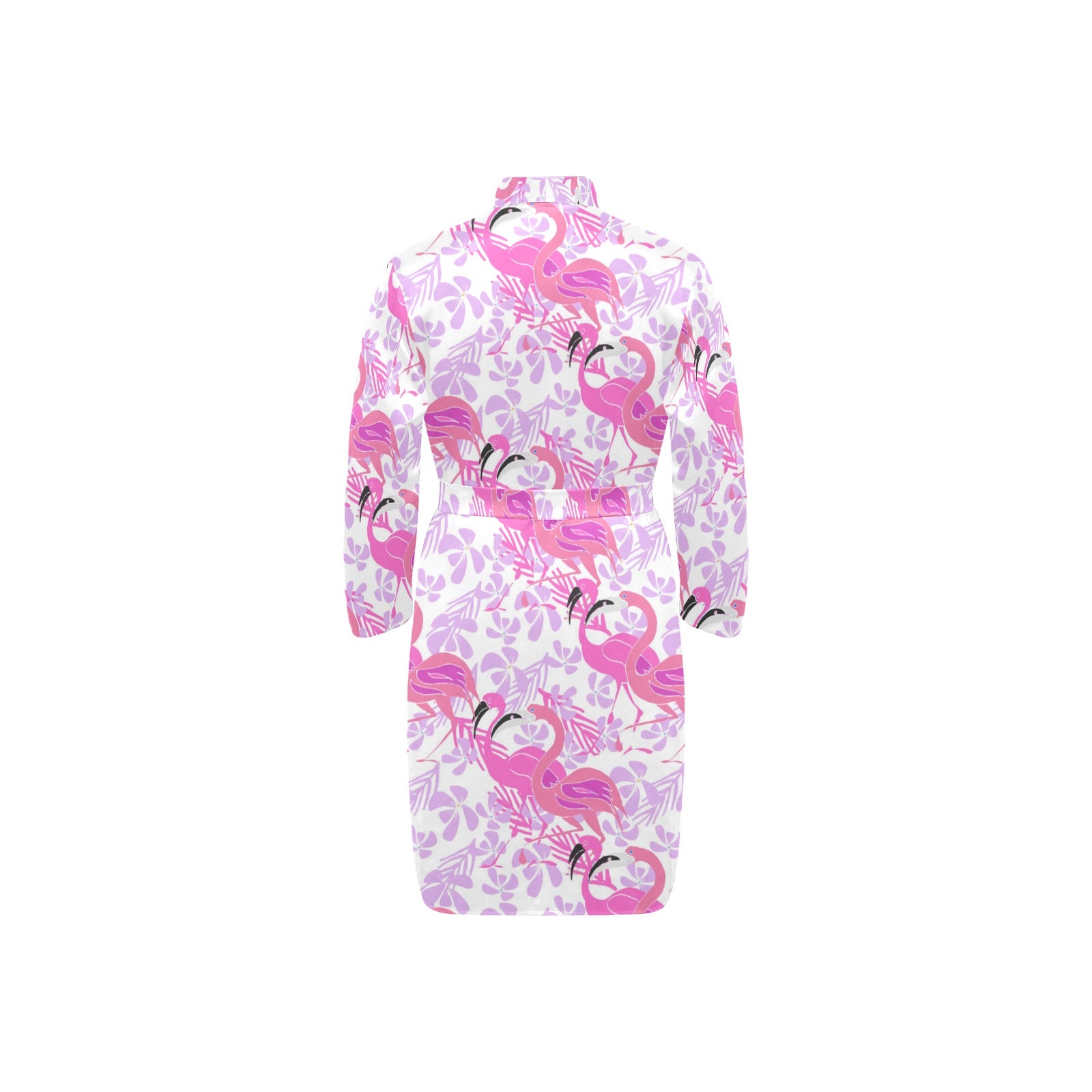 Pink flamingo flower pattern Men's Long Sleeve Belted Night Robe